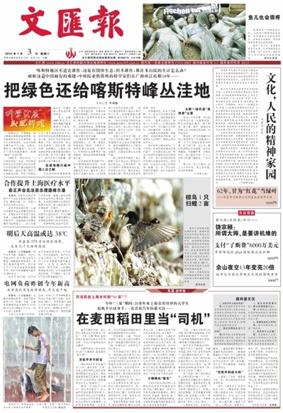 7月3日,文汇报头版“要闻”报道我院大学生农机手——一直喜欢汽车的潘天汉。文章题目:在麦田稻田里当“司机”。