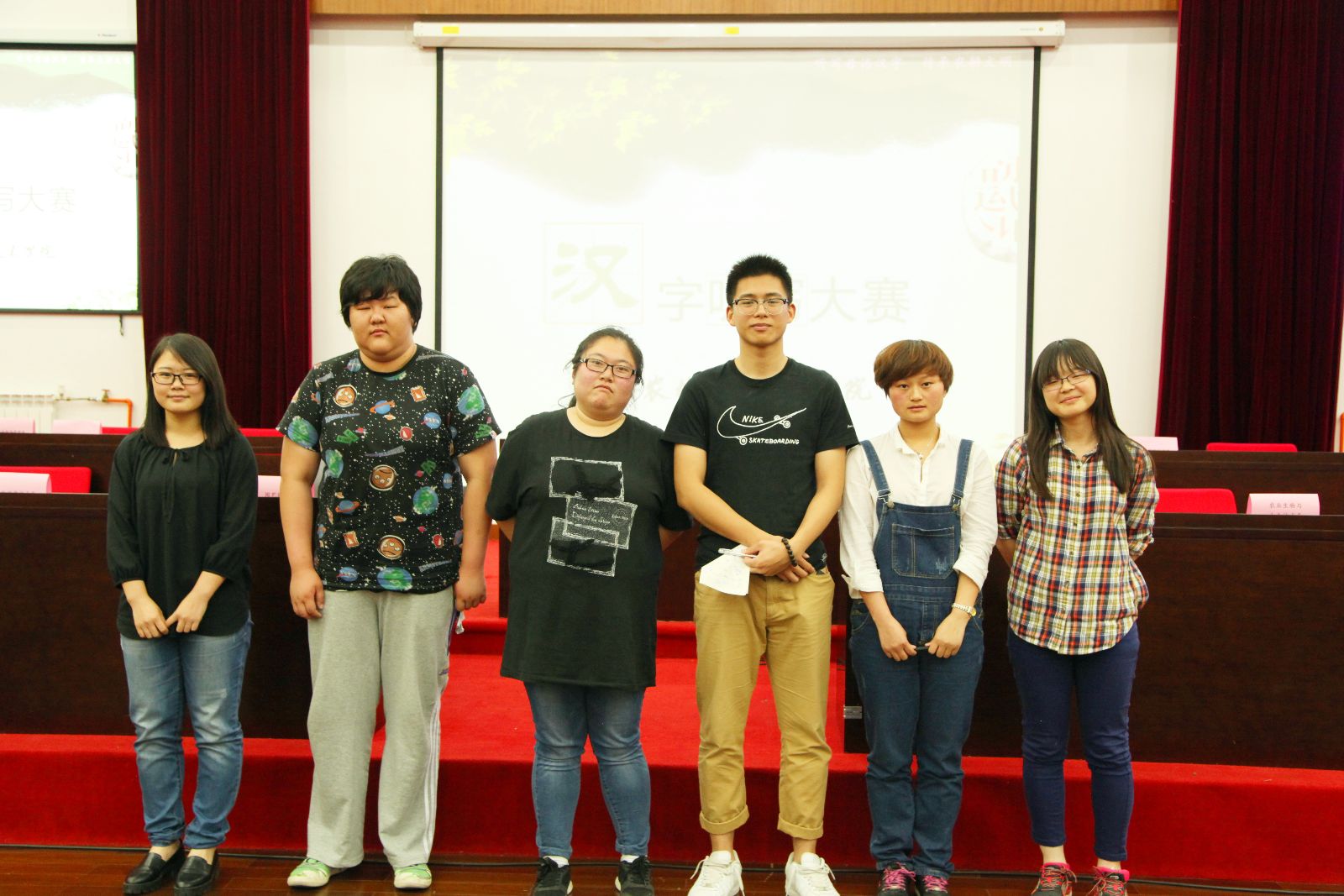 经过前期初赛,五系各有一支队伍进入团体决赛,并选拔了10名学生进入个人决赛。同学们在团体赛上进行紧张商量和书写,再次重温对母语汉字的感觉。现场求助更调动了在场师生书写汉字的热情,有的拿起手机查阅,有的则用笔在纸上书写。个人赛考验了同学文字功底和实力,比赛一度胶着,同学们分数都很接近,最终才分出胜负和名次。