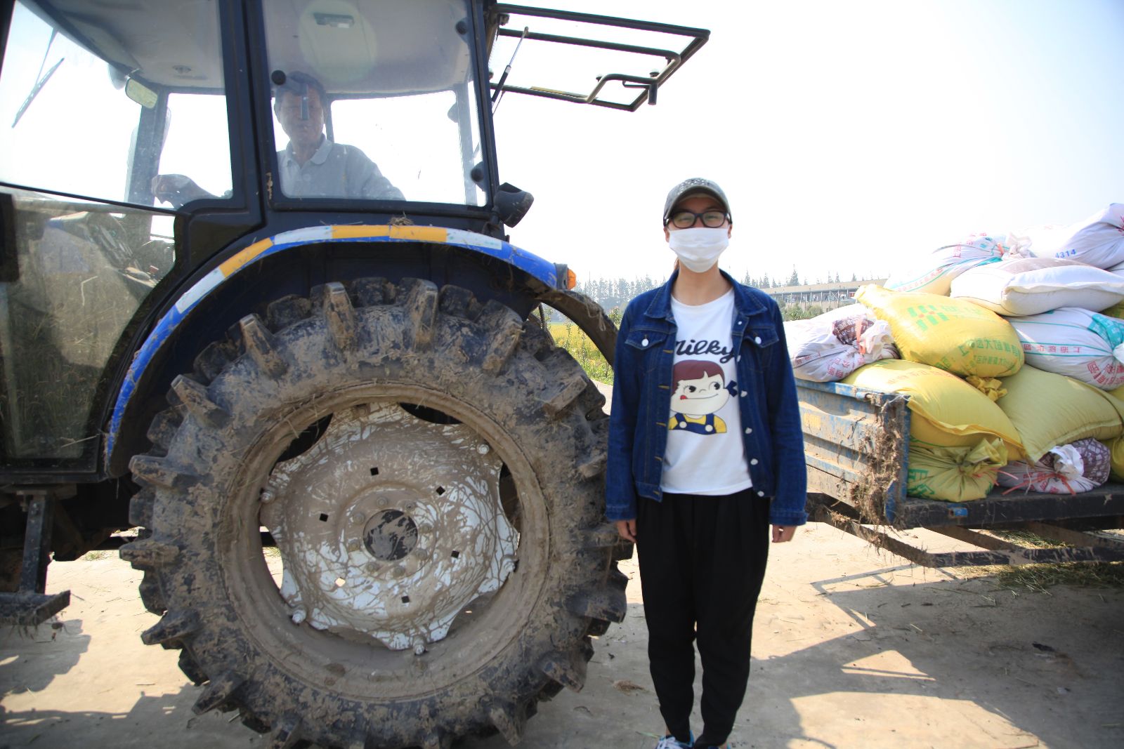 操作好收割机后,杨莉和陈静两位女生带着草帽坐在田头休息调整,地里仍有同学正在操作收割机。稻草渣随风而起在空气中飘散开来,附着在年轻人的头发上,钻进他们的衣物中。杨莉来自四川省内江市的农村,农活对她来说并不陌生。每年暑假正是她家乡的农忙之际,虽然没有驾驶过收割机,但自己常会帮着家里人牵谷袋,晒谷子。陈静表示虽然毕业后不一定从事农业工作,但这样的体验无疑是自己学生生涯的宝贵财富,可以培养自己吃苦耐劳的精神。