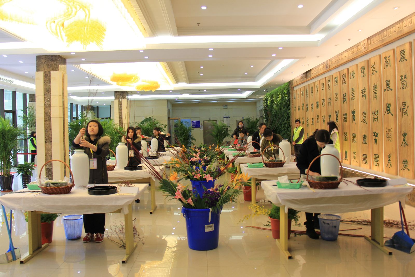 目前,系里正在积极备战艺术插花、园林景观设计两个项目的全国技能大赛。我院是上海市2016年全国职业技能大赛艺术插花项目牵头学校,要全面负责项目组织实施和参赛工作。集训期间,还要组织指导教师团队制定集训方案,并聘请相关企业、行业专家进行提高训练,同时做好耗材准备、入选集训的师生食宿安排等工作,确保集训工作顺利推进。为了保证学生训练效果,指导教师徐卓颖经常要熬夜加班到很晚。园林景观设计由李宝昌老师带头,集训环节,年轻的张婷老师作为指导教师辅导学生日常训练,也是首次担任重量级大赛指导教师。采访之际,正好有学生来找系主任,是两名高职学生,她们在5月18日将代表学院参加上海市选拔赛,为2016年中国技能大赛第44届世界技能大赛上海市选拔赛花艺项目决赛做准备。系部的工作就是这么千头万绪。