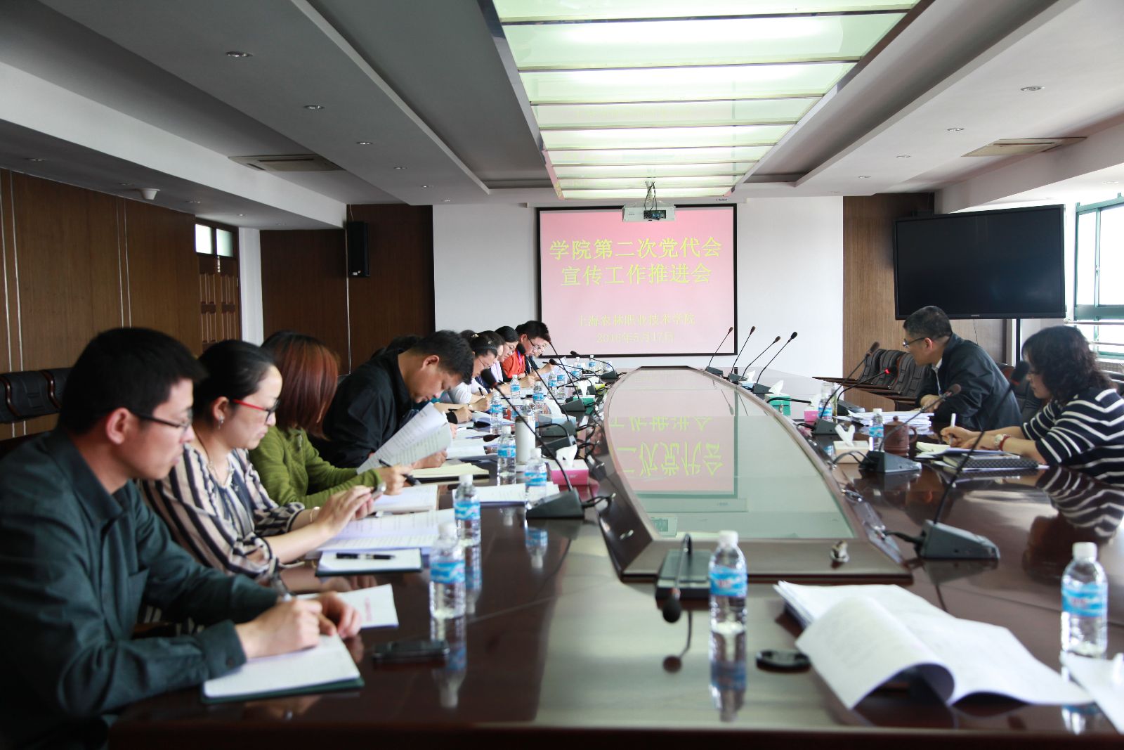 5月17日下午,在1101会议室,学院召开第二次党代会宣传工作推进会,党代会筹备工作领导小组成员、宣传工作组组长仲肇森出席,党办副主任、全体支部书记参加会议,宣传处处长樊清誉主持会议。