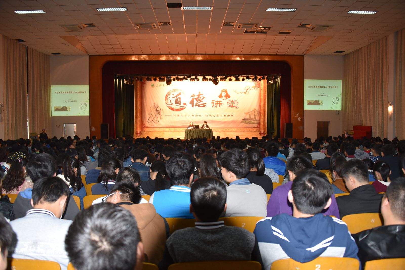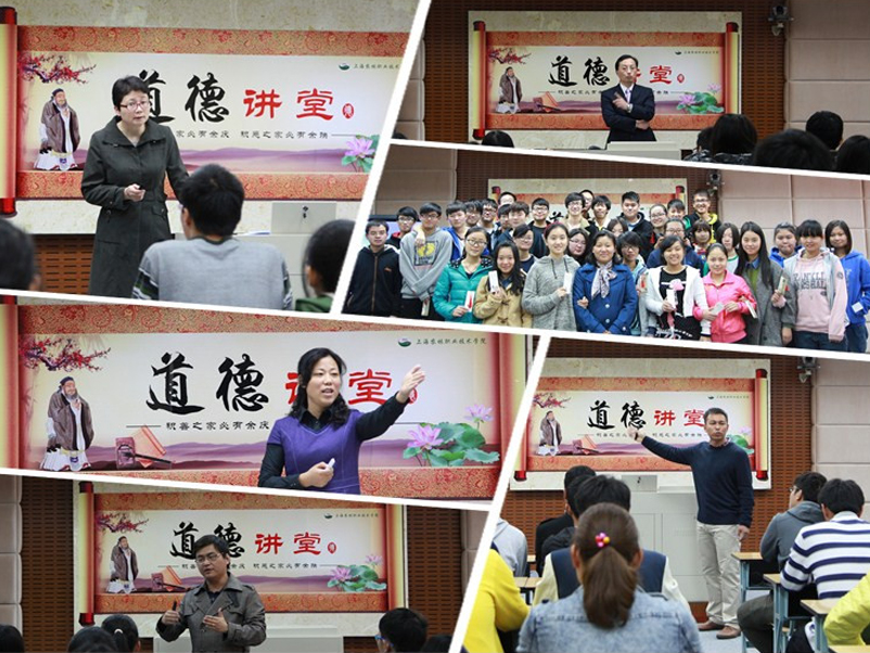 2015—2016学年第一学期,以思政课堂为载体,以社会主义核心价值观为主要内容,以“道德讲堂”为平台,邀请全国、上海市有影响力的思政教学名师来校开讲,现场参加学习的师生超过4000人次,让学生开阔了视野,弘扬了民族精神和时代精神,自觉践行社会主义核心价值观;并进行线上传播,方便师生深入学习、领悟和提高。参加活动的情况和效果计入思政课实践教学课成绩;也缓解了任课教师不足的问题,保证了教学质量。