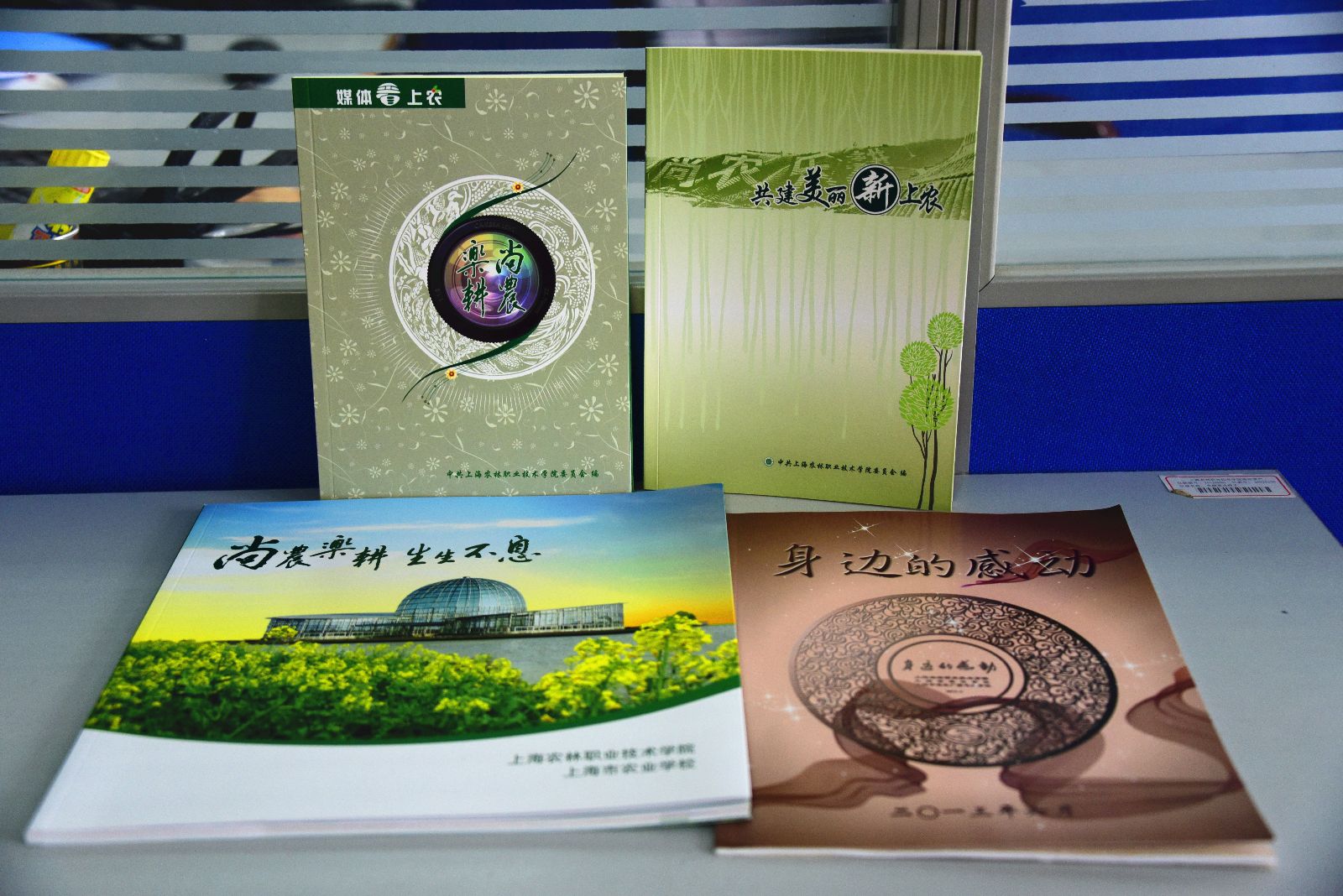 在这个基础上,在2011—2015年的五年时间里,完成了诸多工作:创刊上农报,新版校园网站上线,校训、校歌、校徽、百农图诞生,农林10年、农校65年校庆画册和宣传片问世,身边的感动、共建美丽新上农系列报道、媒体看上农集结成册,官方微博、官方微信开通,新的上农广播台开播,设计了二十四节气、农业谚语、五谷杂粮、传统节日等为农特色鲜明的道旗等等,尤其在学院争创全国文明单位、蝉联九届上海市文明单位的工作中,都留下了部门成员的智慧、努力、辛劳、汗水和默默奉献的印记,大家相互支撑、相互鼓励着走到了2016年。期间,有成员因为职务变动,调离了部门,但是,大家务实肯干的精神在各部门延续着,努力为学院建设发展贡献自己的智慧和力量。