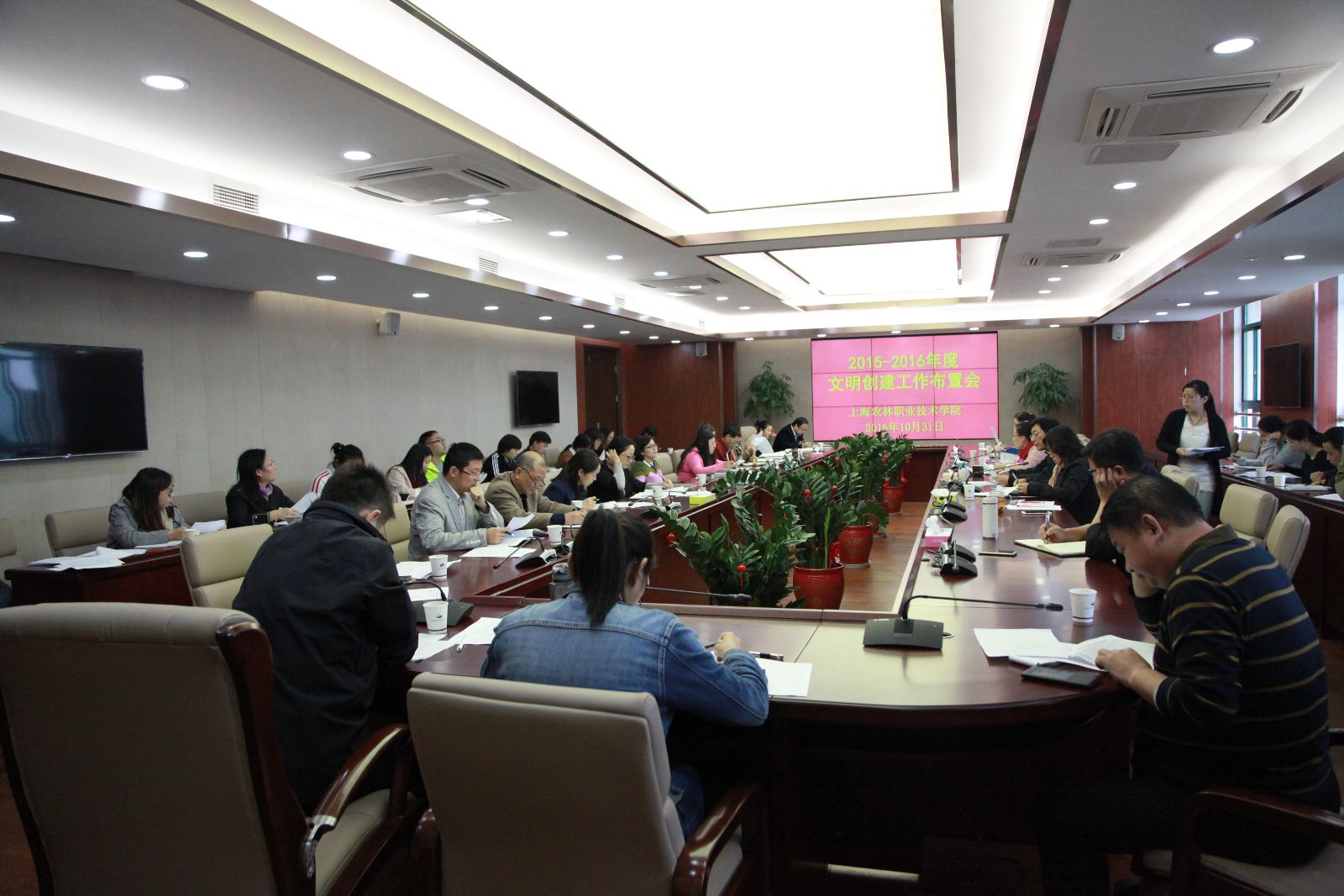 会议部署了学院2015-2016年度市级文明单位创建终期考评和全国文明单位中期考核工作,明确了时间节点和任务要求。还对校园网信息工作完善作了说明,通报了2016年1-9月学院各部门信息报送和录用统计情况,并对各部门9月以后的信息统计进行了调整。