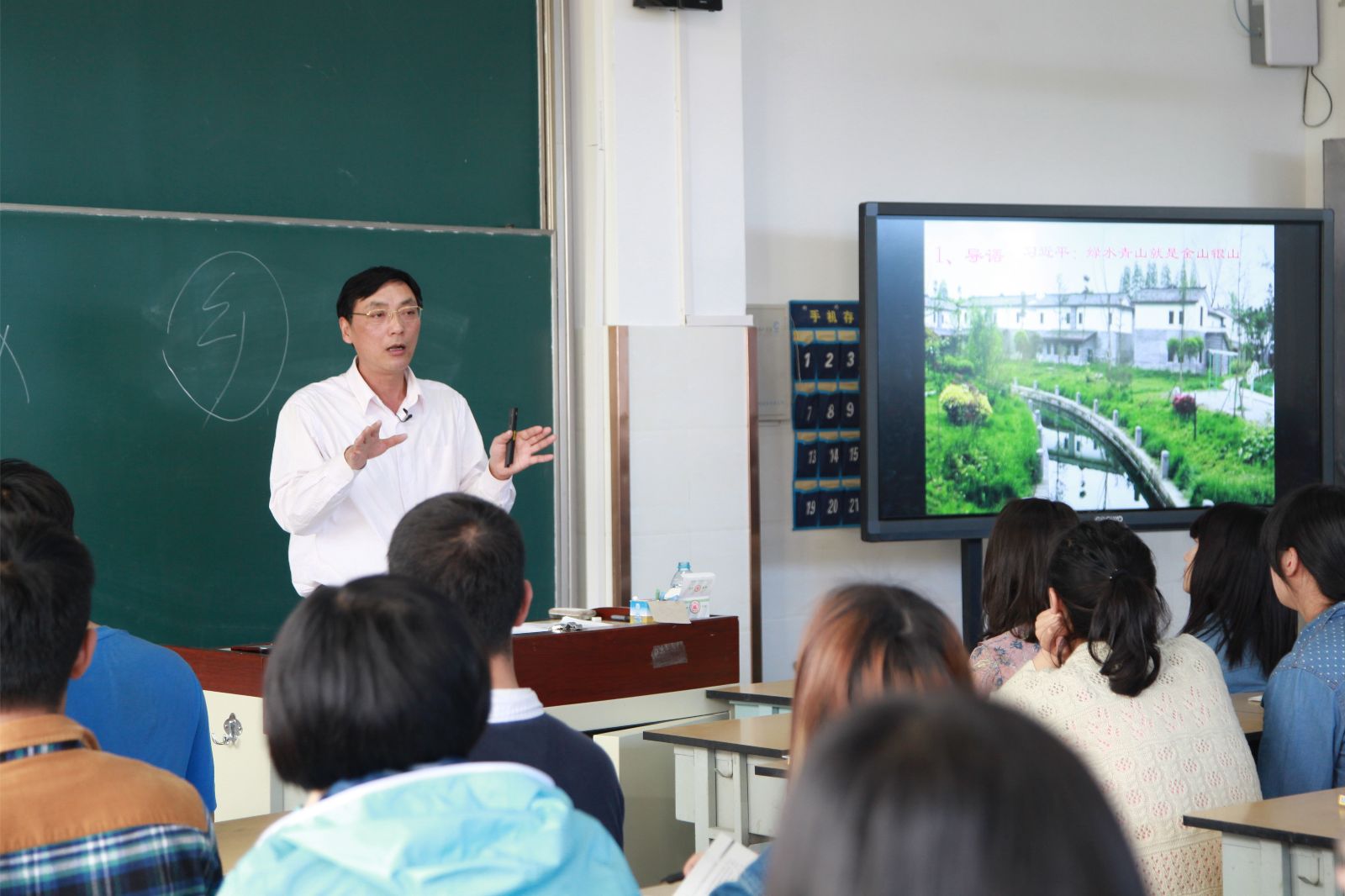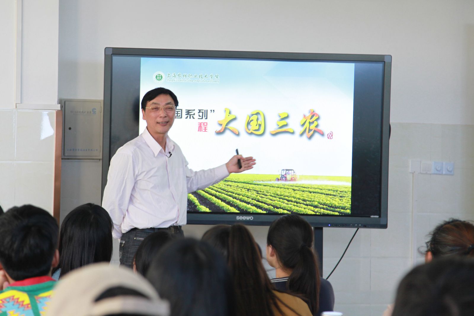 读懂三农,才能读懂中国。4月18日下午,在第一教学楼402教室,面对110多名师生,党委副书记、副院长俞锦禄开出《大国三农》课程第三讲“美丽乡村建设”。本课程遵循“为农服务 特色立校”的办学宗旨,结合学院实际,为帮助学生了解和认识国情,以形势与政策必修课的形式,为全体学生开出的上海高校“中国系列”课程之一,是落实全国和上海市高校思想政治工作会议精神,创新我院思政课教学改革的新探索。