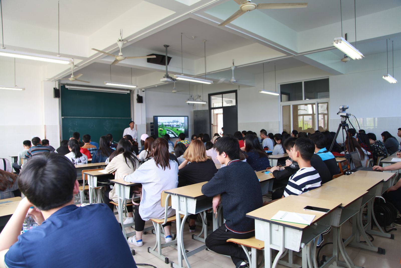 在一个半小时里,俞锦禄结合自身成长经历和所见所闻,生动讲解了美丽乡村建设的背景、内容、发展历程、现状以及上海美丽乡村建设的实践,使在场师生对国家和上海市美丽乡村建设工作有了深刻的了解和认识。商管161班张蒙同学说:“我的家乡在安徽安庆,小的时候村里都是泥巴路,坑坑洼洼,晴天一身土,雨天一身泥,现在铺了柏油马路,村子立马变干净了,交通也便利许多。没有人再住砖瓦房,家家户户都盖了小洋房,生活条件比以前改善很多,这都是国家大力推进美丽乡村建设的成果。”休闲161班张心茹同学说:“俞书记的讲课内容与我的专业非常贴近,听了很受启发。国家提出建设美丽乡村,加强了农村生态环境建设,环境保护和整合整治能力得到大步提升,现在的农村不再是空村、破屋、荒地,垃圾处理靠风吹,处处脏乱差,而是小桥、流水,风景宜人,空气清新,民风淳朴,形神有序,节奏舒缓,是繁忙都市人士的旅游首选之地。我的专业主要与农业旅游相关,现在乡村旅游、农家乐很热门,就业前景非常好,我也很开心能带游客在环境优美的乡村旅游。”