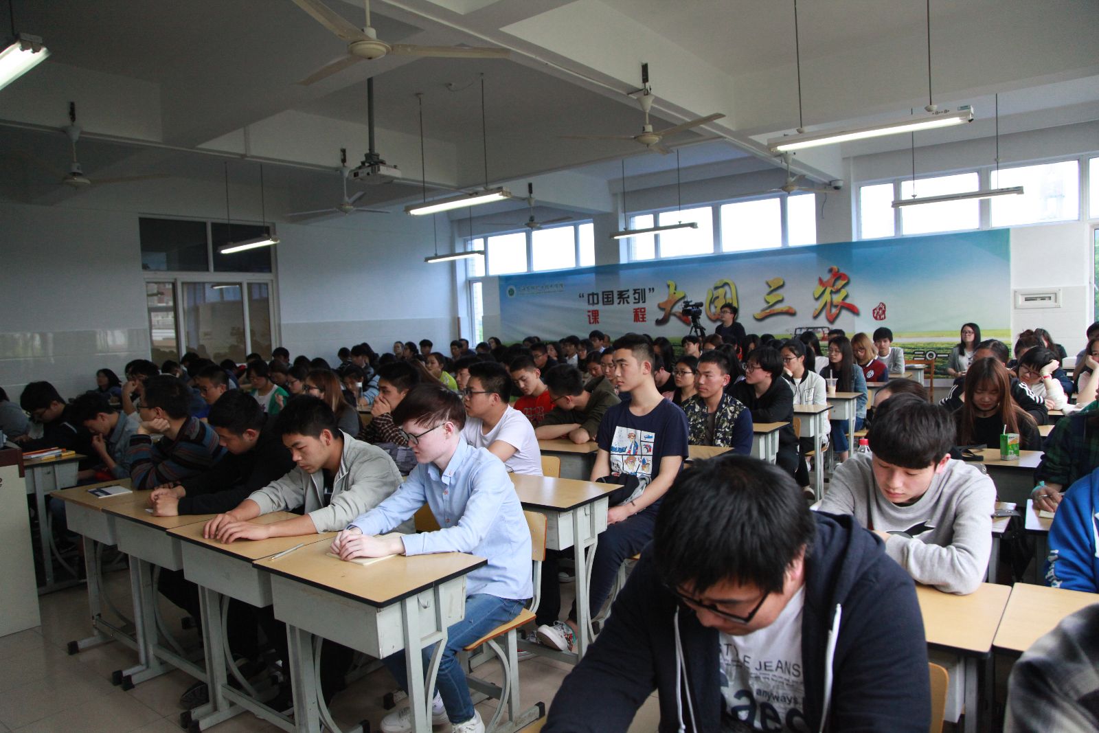 读懂三农,才能读懂中国。4月25日下午,在第一教学楼402教室,面对110多名师生,副院长仲肈森开出《大国三农》课程第四讲“舌尖上的安全:执政能力的重大考验”。本课程遵循“为农服务 特色立校”的办学宗旨,结合学院实际,为帮助学生了解和认识国情,以形势与政策必修课的形式,为全体学生开出的上海高校“中国系列”课程之一,是落实全国和上海市高校思想政治工作会议精神,创新我院思政课教学改革的新探索。