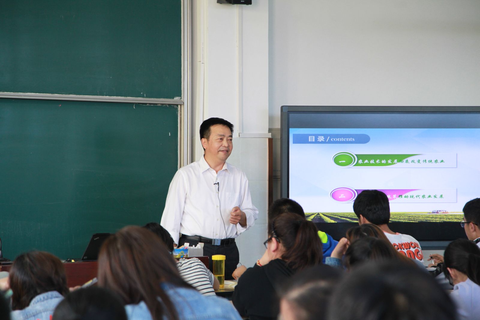 读懂三农,才能读懂中国。5月9日下午,在第一教学楼402教室,面对80多名师生,副院长谢锦平开出《大国三农》课程第六讲“现代农业技术及都市农业”。本课程遵循“为农服务 特色立校”的办学宗旨,结合学院实际,为帮助学生了解和认识国情,以形势与政策必修课的形式,为全体学生开出的上海高校“中国系列”课程之一,是落实全国和上海市高校思想政治工作会议精神,创新我院思政课教学改革的新探索。