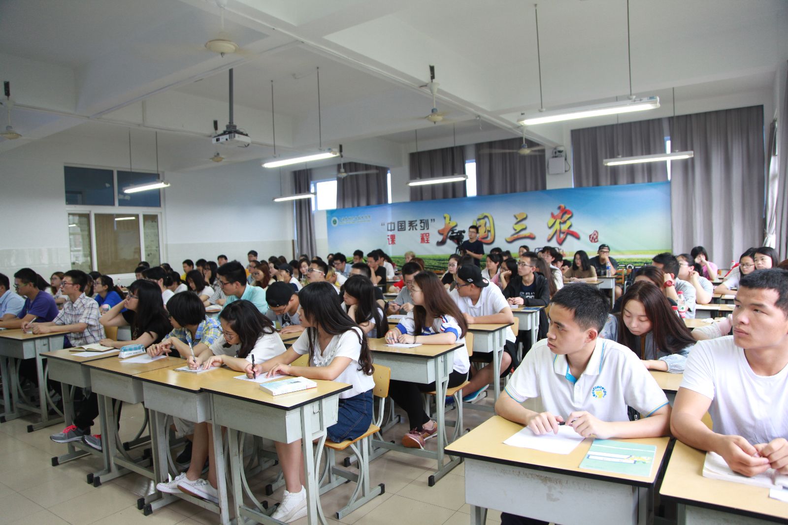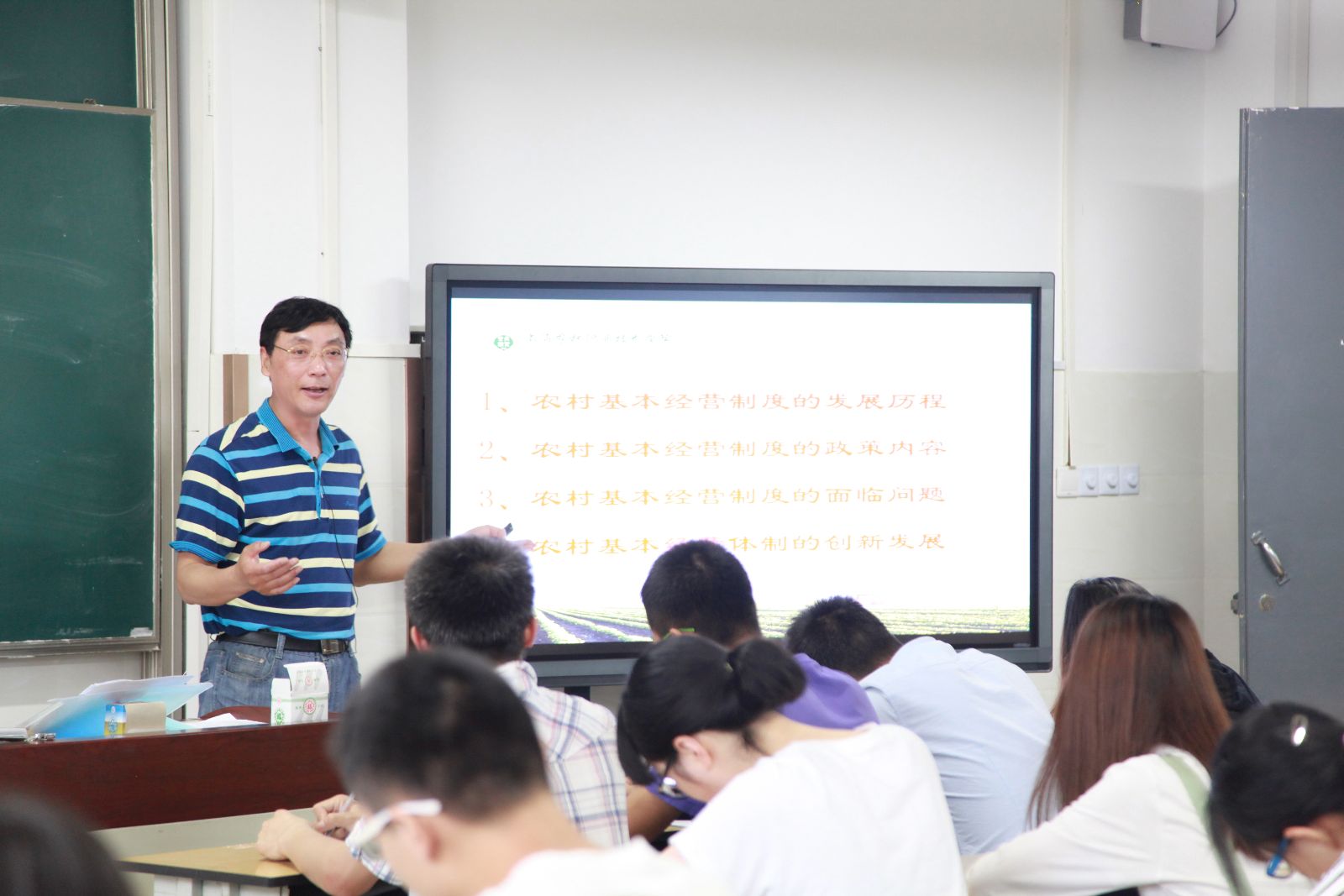读懂三农,才能读懂中国。5月31日上午,在第一教学楼502教室,面对100多名师生,党委副书记、副院长俞锦禄开出《大国三农》课程第九讲“农村基本经营制度”。本课程遵循“为农服务 特色立校”的办学宗旨,结合学院实际,为帮助学生了解和认识国情,以形势与政策必修课的形式,为全体学生开出的上海高校“中国系列”课程之一,是落实全国和上海市高校思想政治工作会议精神,创新我院思政课教学改革的新探索。