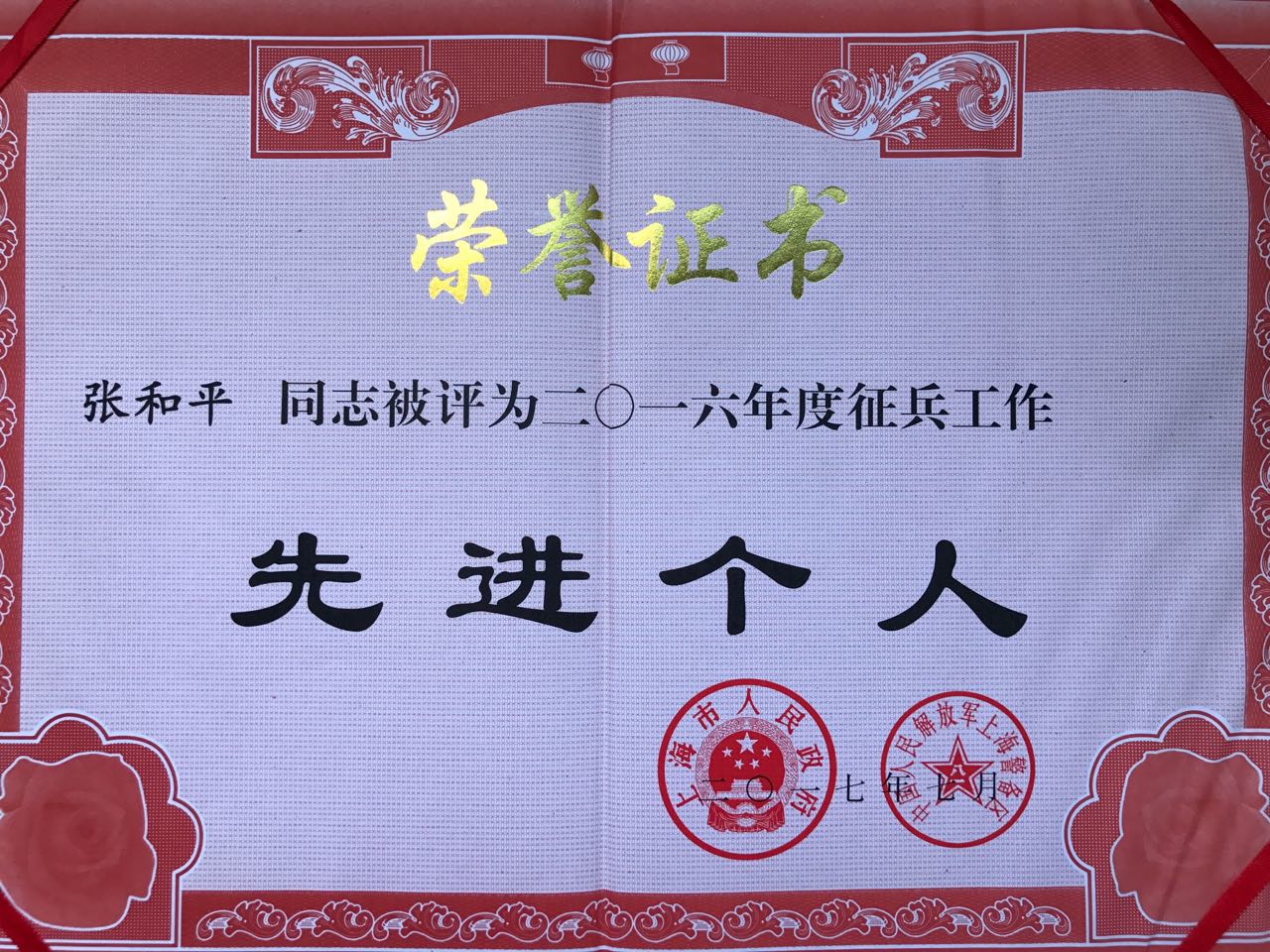 日前,收到上海市人民政府《关于表彰2016度上海市征兵工作先进单位和先进个人的决定》(沪府发〔2017〕48号),我院获评“2016年度上海市征兵工作先进单位”。这是继2014、2015年后,2016年度再次获得“上海市征兵工作先进单位”光荣称号。同时,张和平同志被评为“2016年度上海市征兵工作先进个人”。