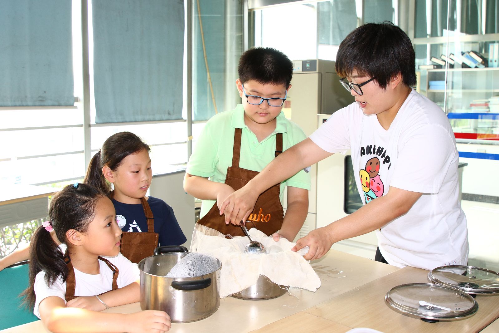 为了做好职业体验项目工作,学校派出了14名工作人员参与,每一位工作人员各司其职,工作开展得尽然有序。从体验项目的策划与实施、基地环境布置、学生志愿者和工作人员安排、后勤保障等方面做好了充足的准备,动足了脑筋。为了防暑降温,他们为学生和家长免费提供了盐汽水和绿豆汤。