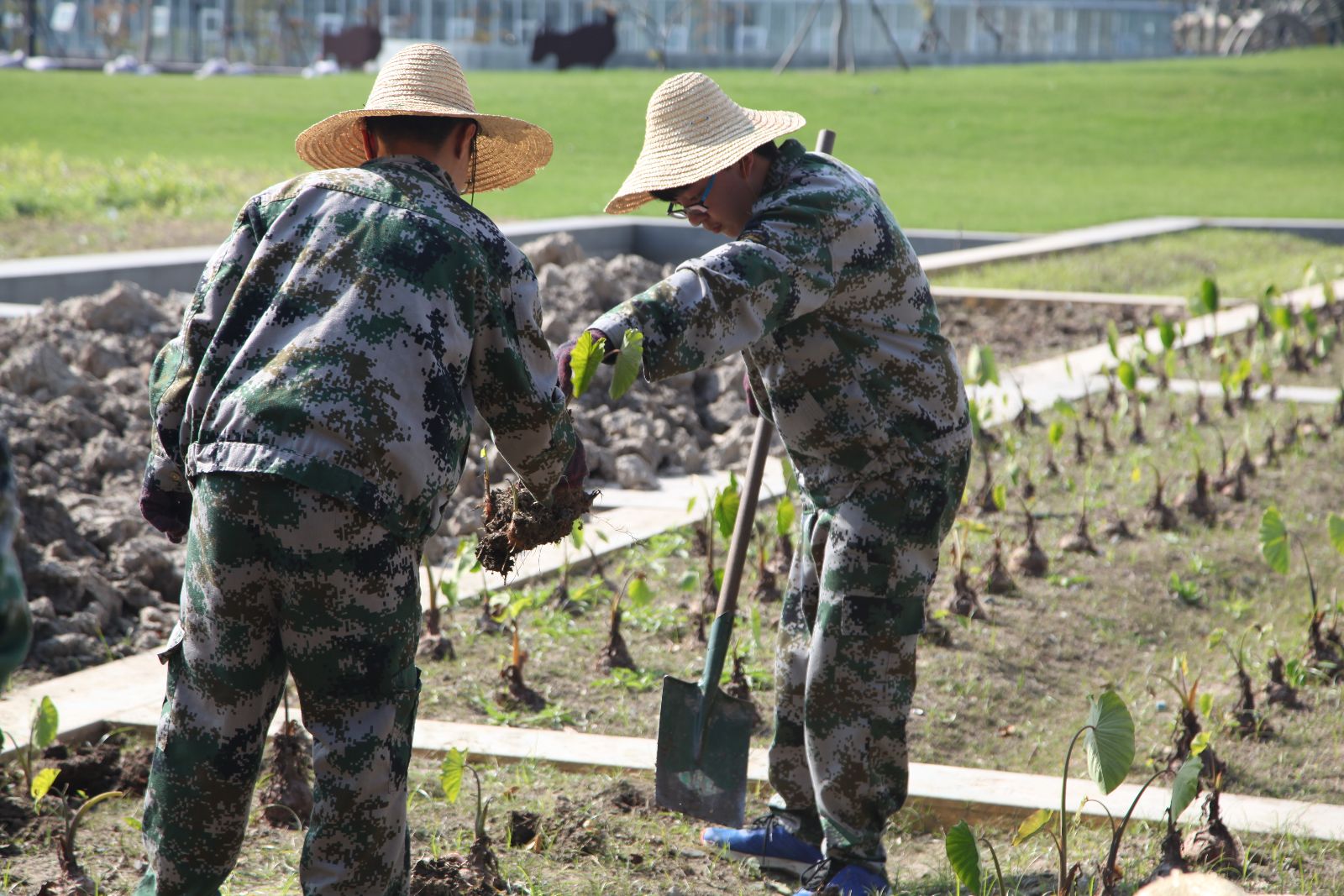 11月1日下午,负责生产实践课程的杨竹莹老师带着宠物162班学生们在地里挖芋艿。杨竹莹老师说:“学院每次开展 ‘学农与双创’的时间不一样,各时段收获的农作物时间也不同,所以每个班的生产实践活动会因时因地调整,比如上个学期正好赶上大米需要包装,卷心菜成熟的时候,同学们就分装大米和收割卷心菜。这个学期学正值水稻丰收和芋艿成熟的时候,水产161班级就去收割水稻,宠物162班级就挖芋艿。这样既能培养他们的动手能力,也能了解各种农作物成熟的不同周期,同时缓解了基地在收获时节的用人压力,应该说达到多赢的效果。”