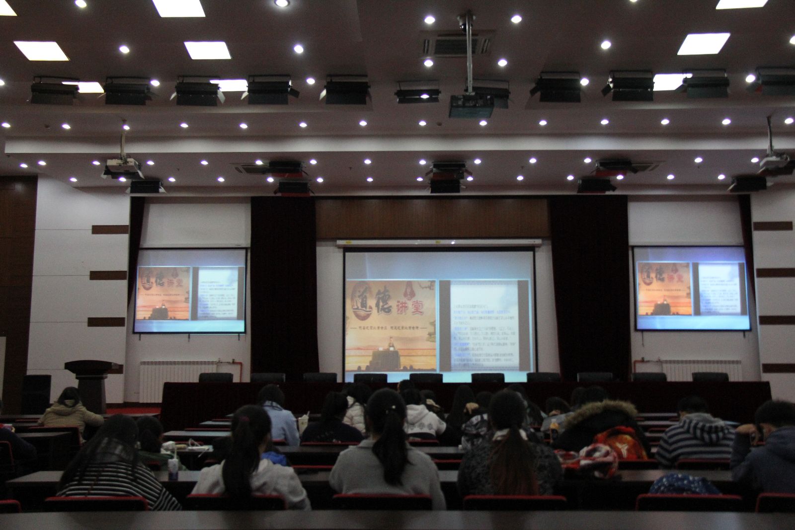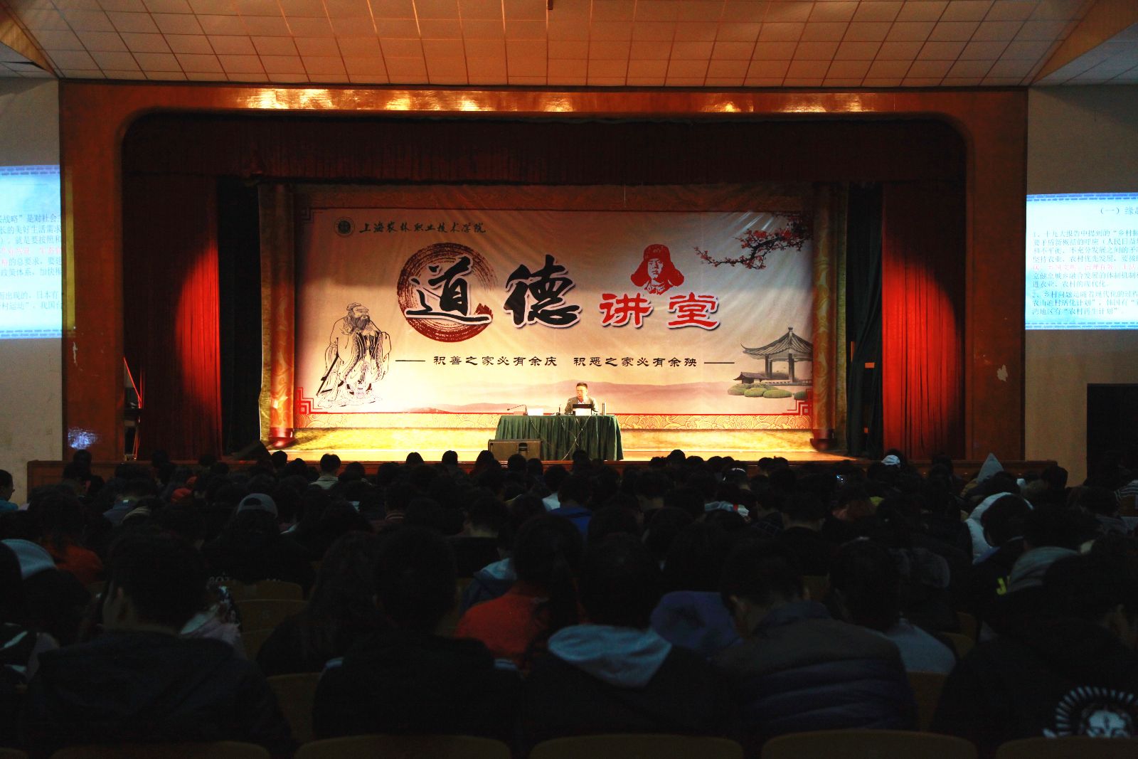 12月1日下午,学院道德讲堂第三讲开讲。近1200名2017级高职学生和2015级中高贯通班学生,分别在大礼堂主会场和205报告厅分会场,共同聆听复旦大学中文系博士生导师吴兆路教授主讲“重农抑商与中国传统文化的再认识”。宣传处处长、思政部主任樊清誉主持。
