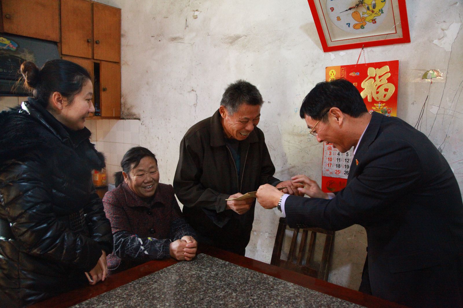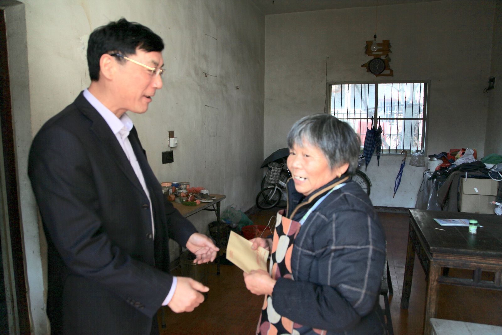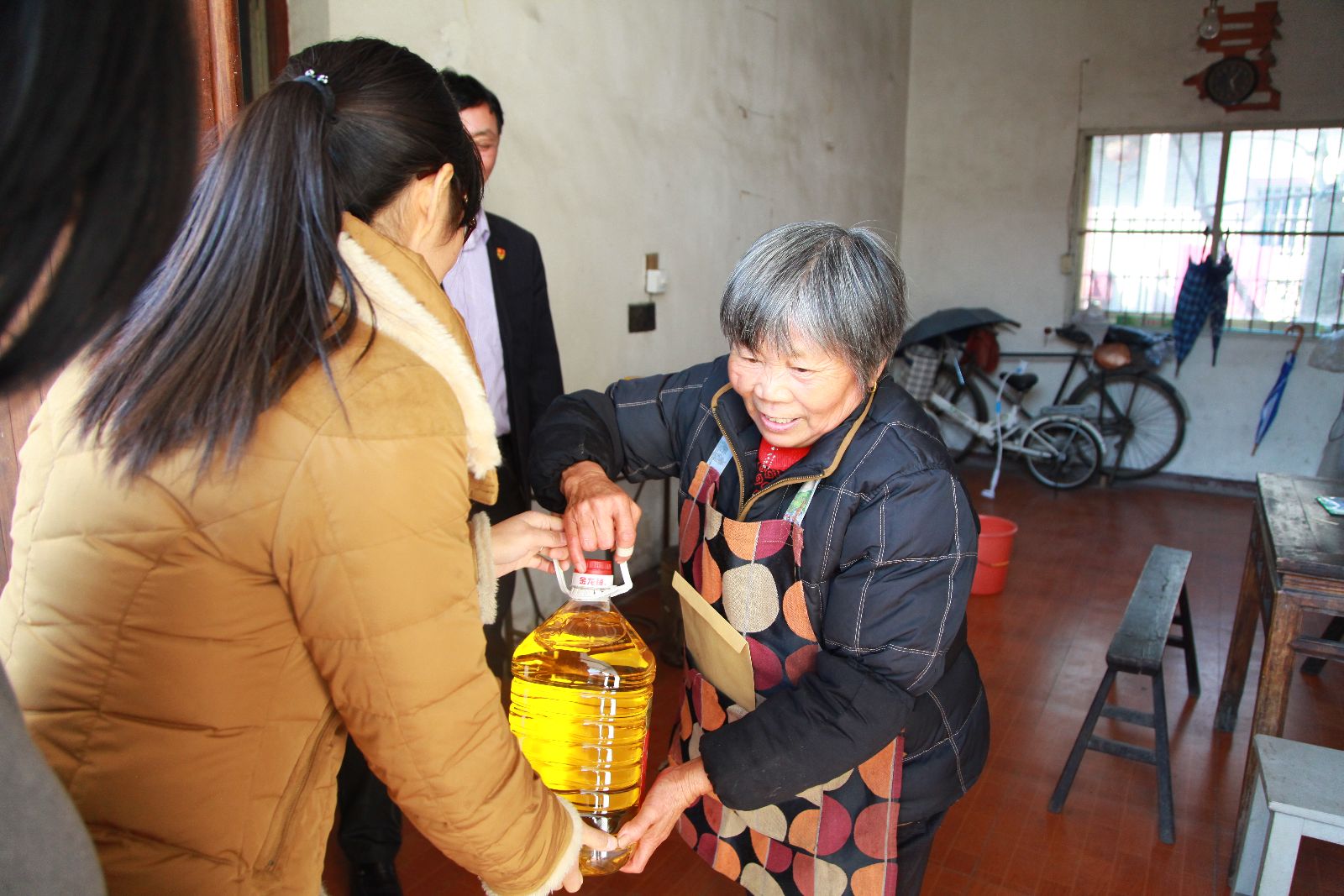 俞锦禄带领结对党支部书记走访慰问了老党员蒋杏宝、学生蒋子羿、村民吴美兰3户困难户,送去慰问品和慰问金,与他们亲切交谈,了解他们生活中的实际困难,鼓励他们要保重身体、坚定信心、战胜困难。