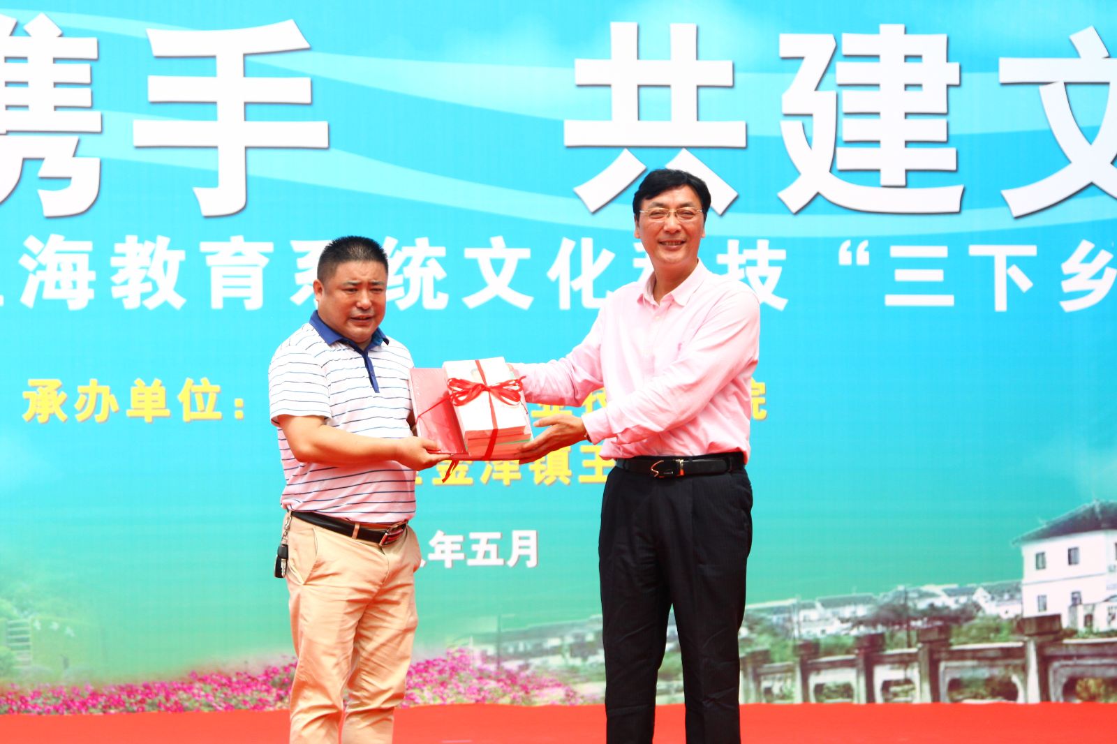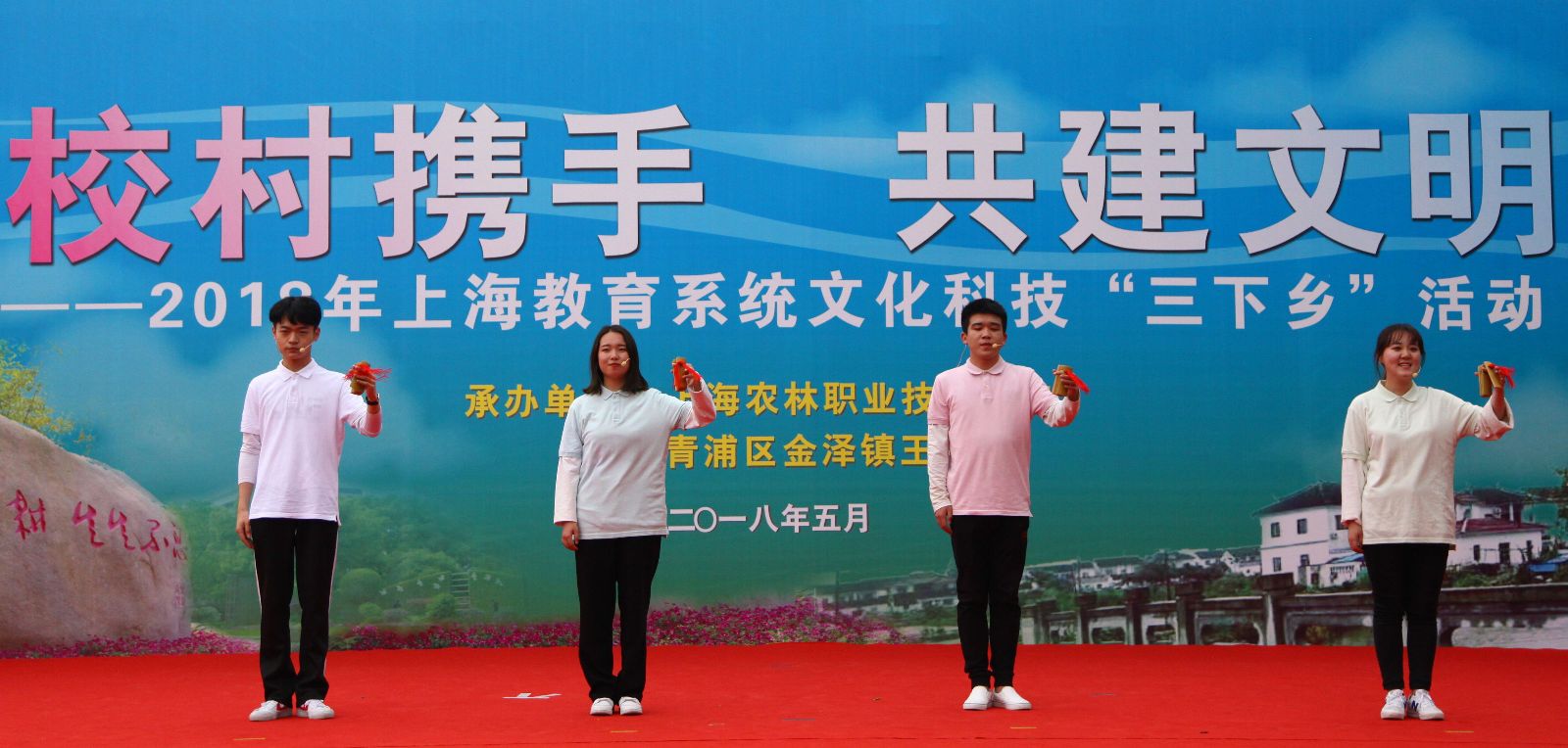 5月27日下午,学院赴青浦区金泽镇王港村开展“校村携手 共建文明”2018年上海教育系统文化科技“三下乡”活动。党委副书记、副院长俞锦禄代表学院向王港村党支部赠送一批党建书籍,学院百余名师生、农业专家,王港村近200余名村民参与文明共建活动,场面热闹非凡。