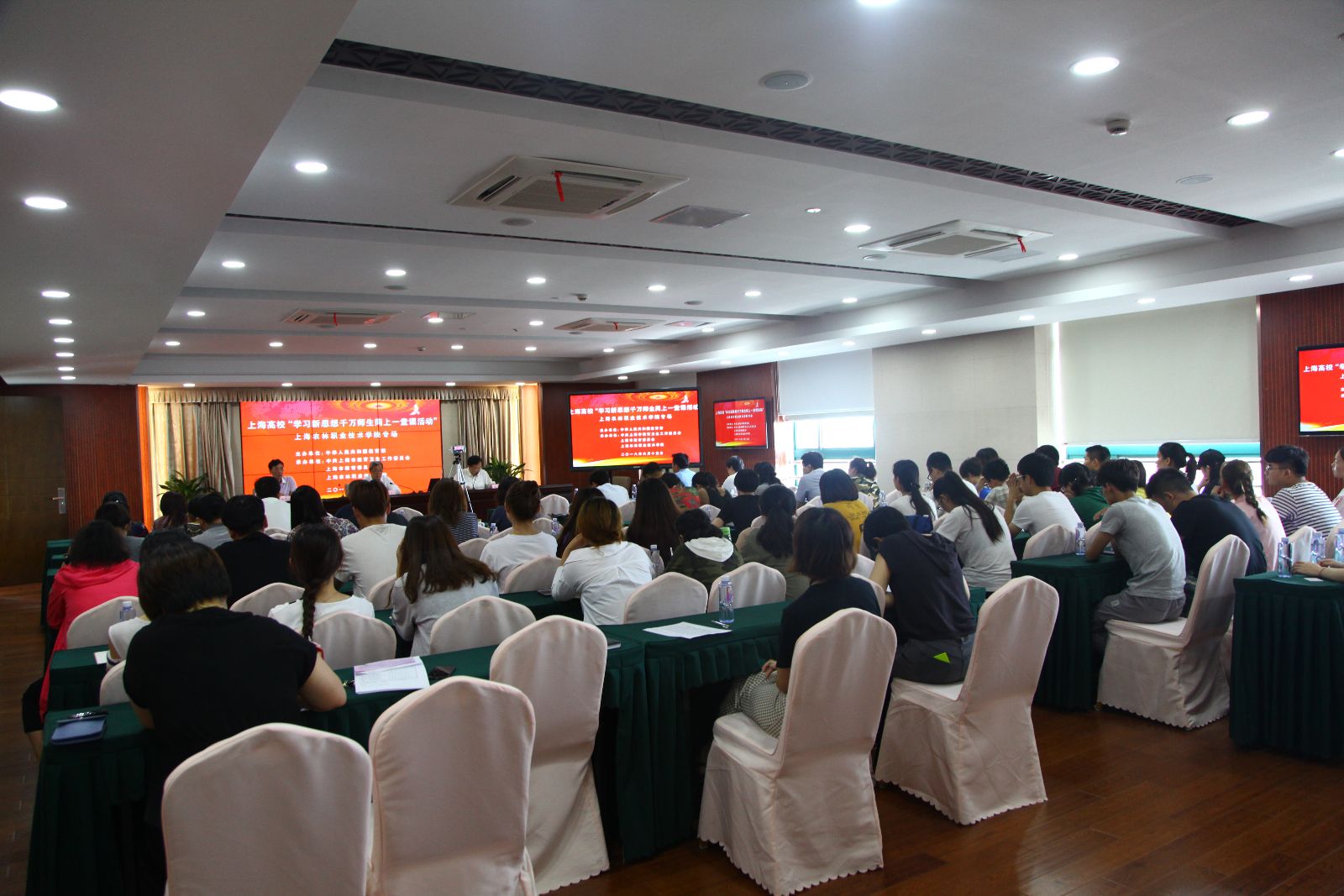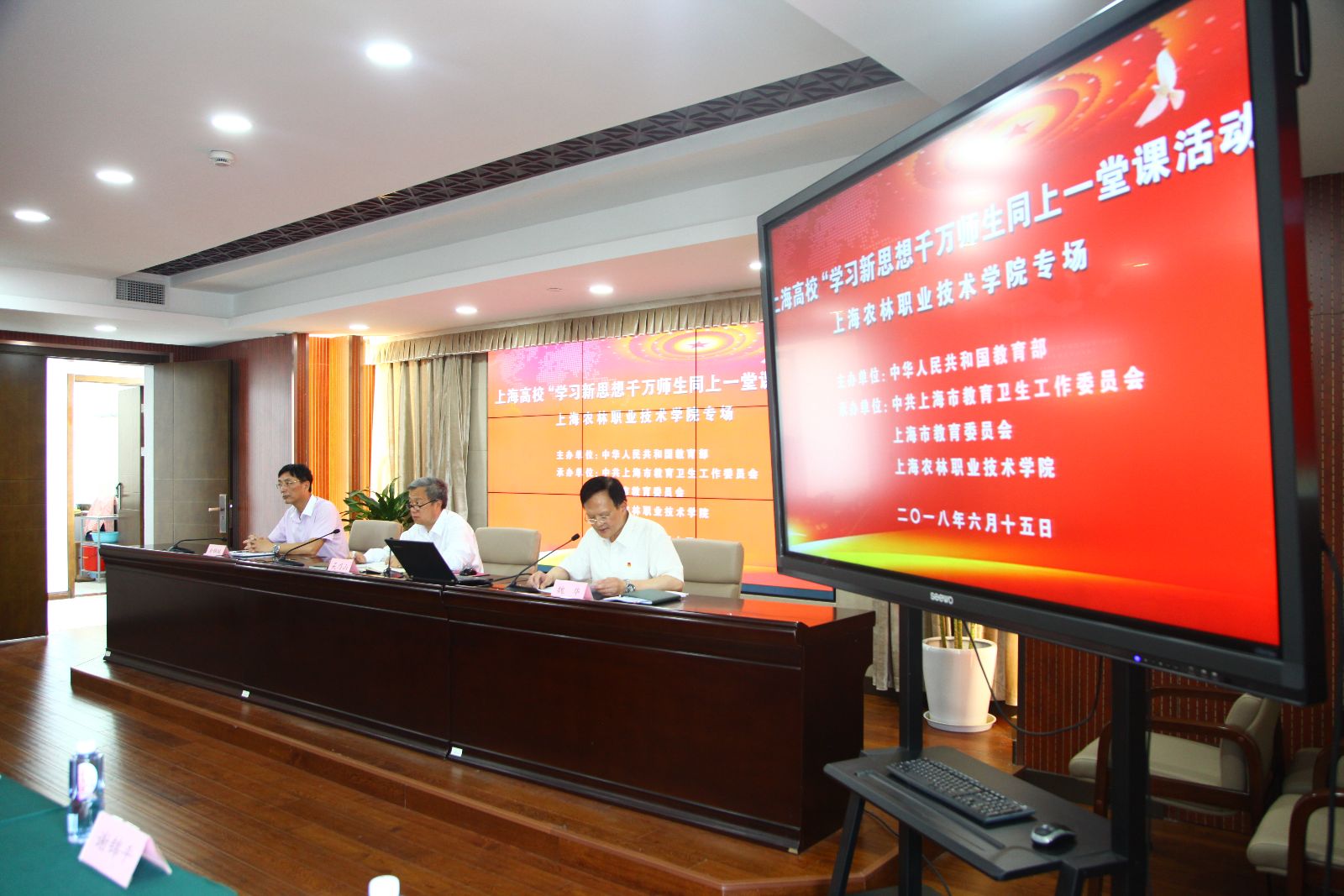 6月15日下午,上海高校“学习新思想千万师生同上一堂课活动”上海农林职业技术学院在校本部举行首场授课并通过网络同步直播。党委书记吴乃山,思政部曹秋梅副教授,农经系左宏琴老师分别为师生授课。学院领导班子成员,党总支书记、支部书记,全体思政教师、学生代表参加了现场活动。学院党委副书记、院长魏华主持授课活动。