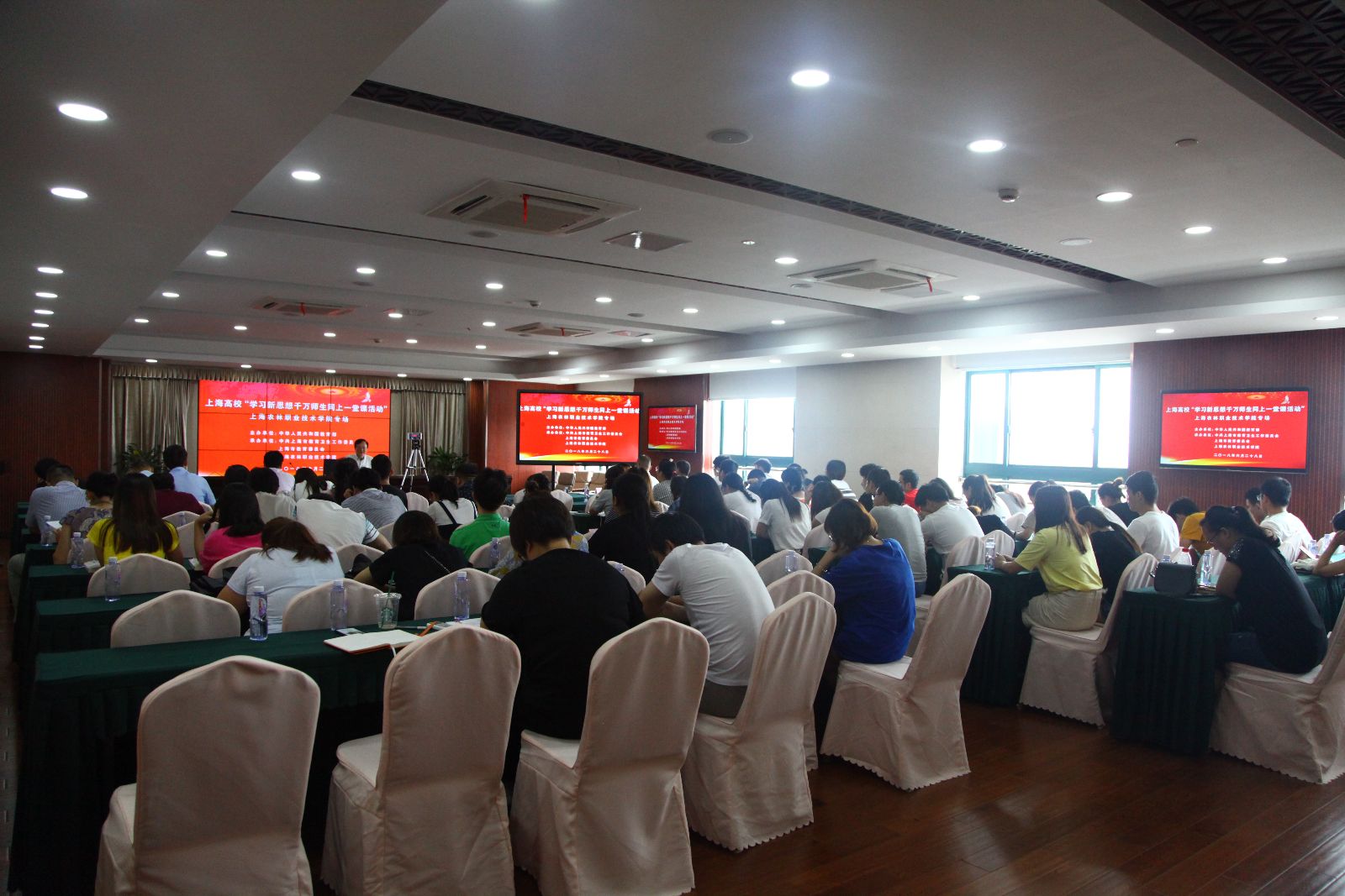 6月28日下午,“学习新思想千万师生同上一堂课活动”上海农林职业技术学院在校本部举行第二场授课。党委副书记、院长魏华,思政部徐帆副教授,动科系郭印老师分别授课。学院领导班子成员、党总支书记、支部书记、全体思政教师、学生代表参加现场活动。