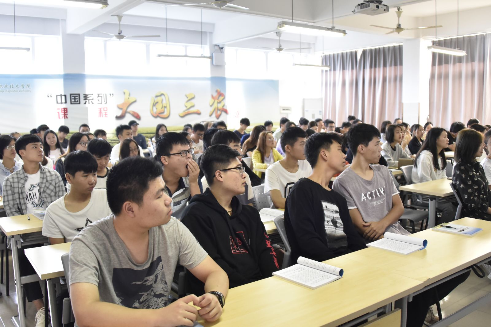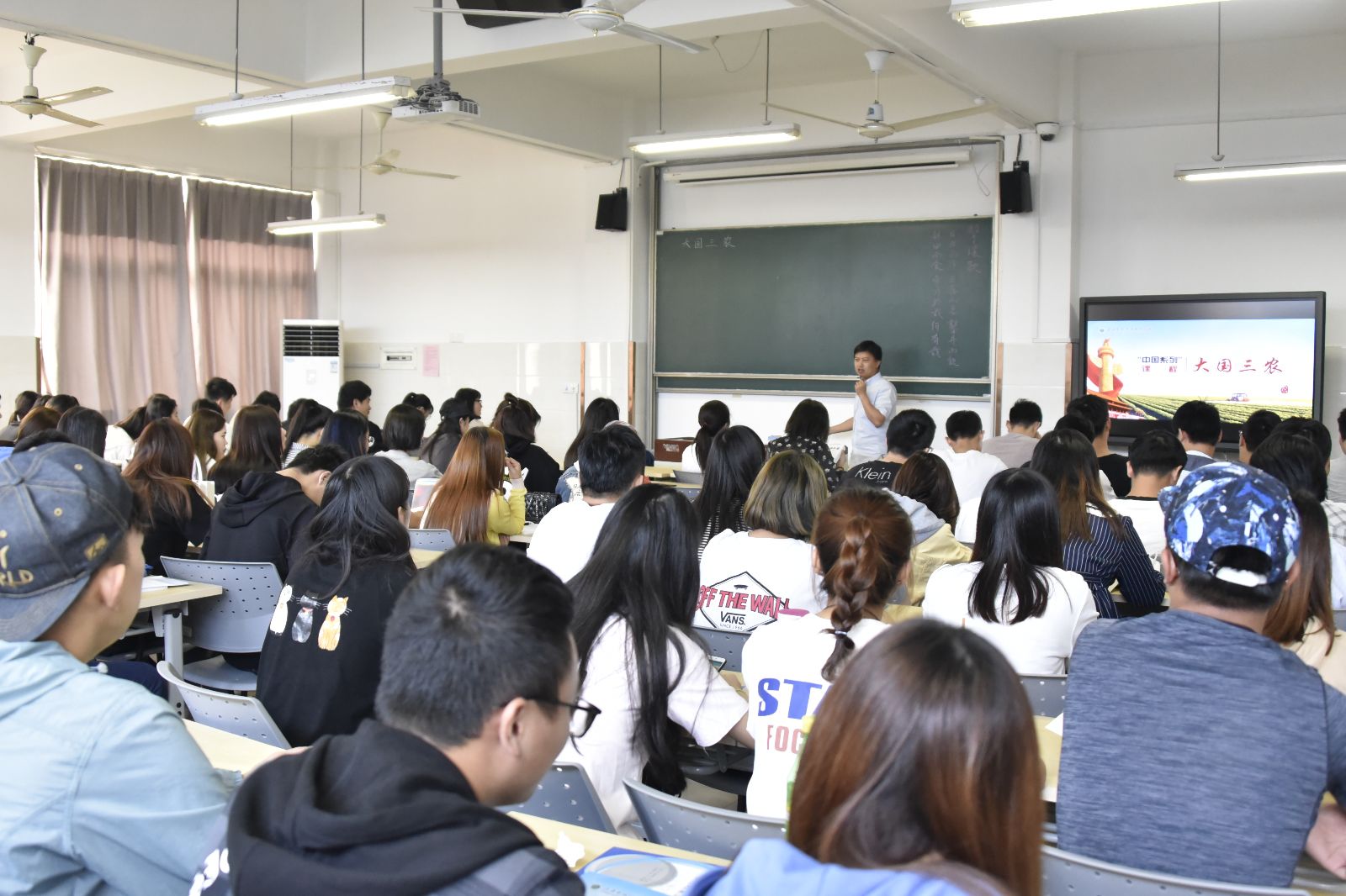 10月9日,在一教402教室,“中国系列”课程《大国三农》开始第四轮授课。本学期暨2018—2019学年第1学期,农业生物与生态技术系、农业经济管理系、农业信息工程系三个系521名2017级学生学习《大国三农》,并将在寒假进行社会实践。