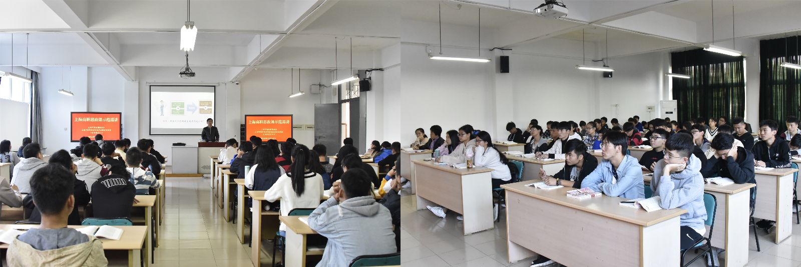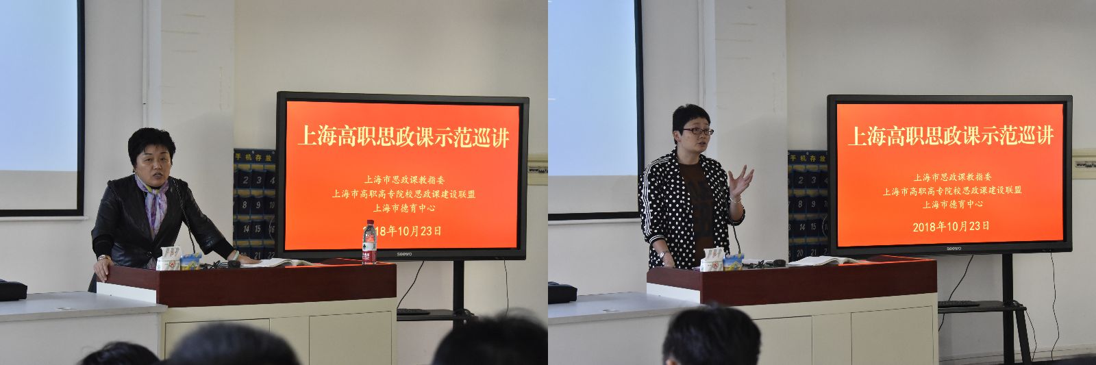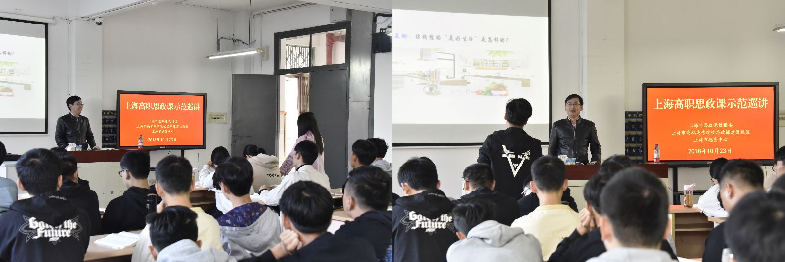 为深入学习贯彻全国和上海高校思想政治工作会议精神,落实教育部《新时代高校思想政治理论课教学工作基本要求》,切实推进党的十九大精神和习近平新时代中国特色社会主义思想进教材、进课堂、进头脑,9月底开始,上海高职高专思政课建设联盟在上海高职高专院校中开展思政课示范巡讲活动。10月23日上午,上海电子信息职业技术学院思政教师刘学飞来我院进行思政课示范巡讲,思政部负责人和专任教师,网络181班、网络182班共86位师生共同聆听了思政示范课。思政部主任樊清誉主持思政课示范巡讲会。