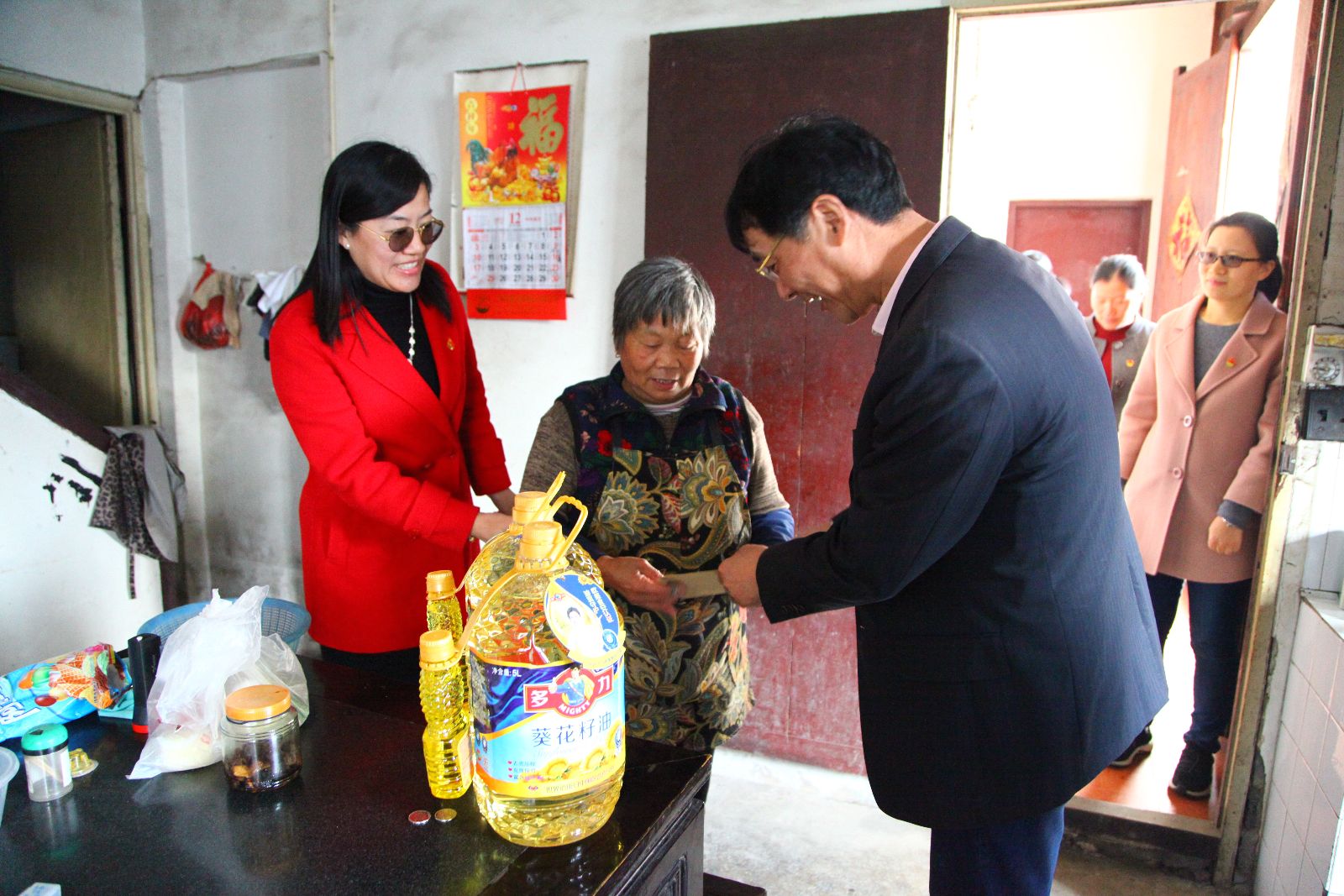 俞锦禄带领结对党支部书记走访慰问了老党员蒋杏宝、学生蒋子羿、村民吴美兰3家困难户,送去慰问品和慰问金。每到一户人家,俞书记都与他们亲切交谈,了解他们生活中的实际困难,鼓励他们要保重身体、坚定信心、战胜困难。