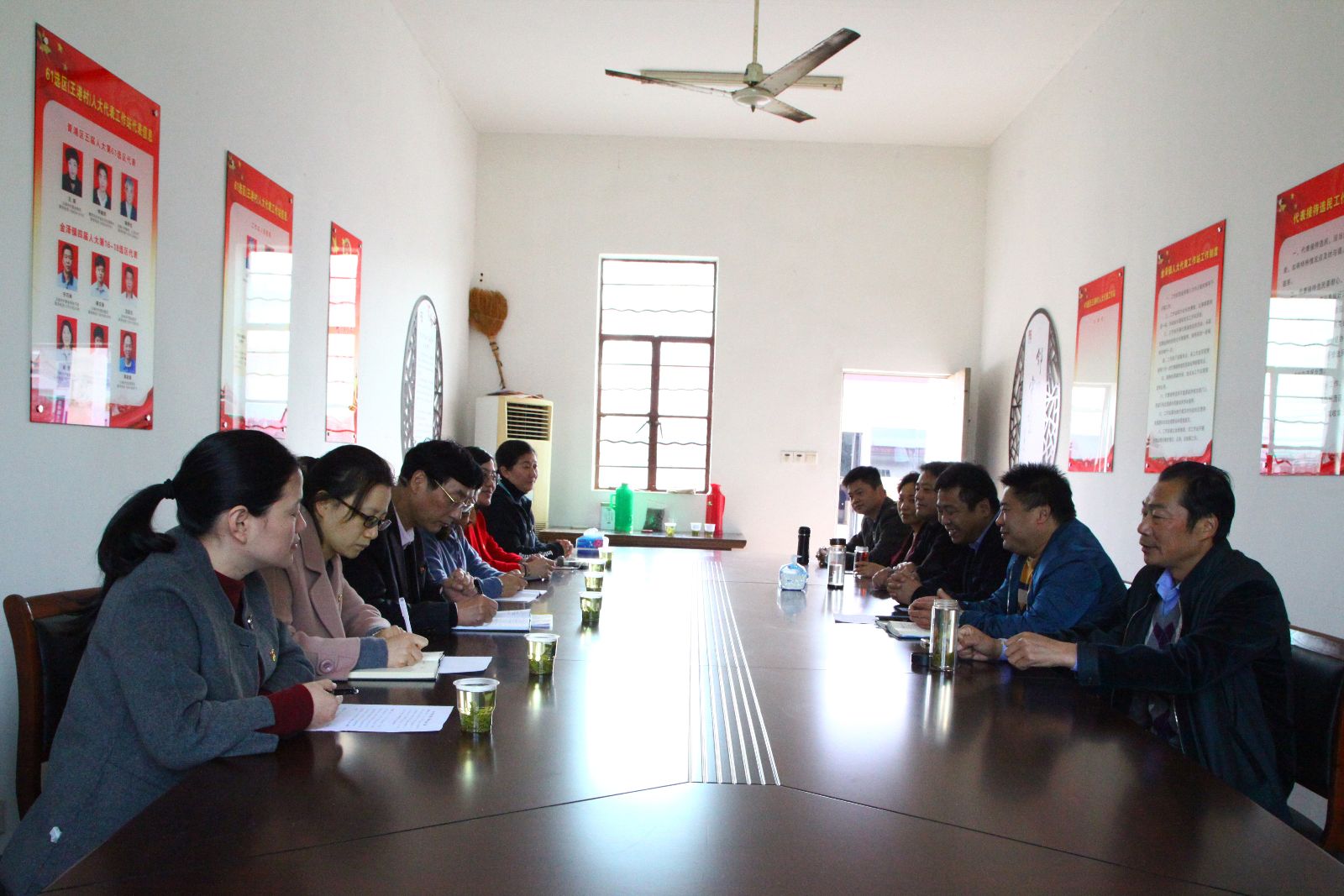王港村党支部书记蒋金华从村两委班子换届、村庄改造和美丽乡村建设、平整土地等方面汇报了王港村一年来的发展建设情况、存在的困难和亟待解决的问题。
