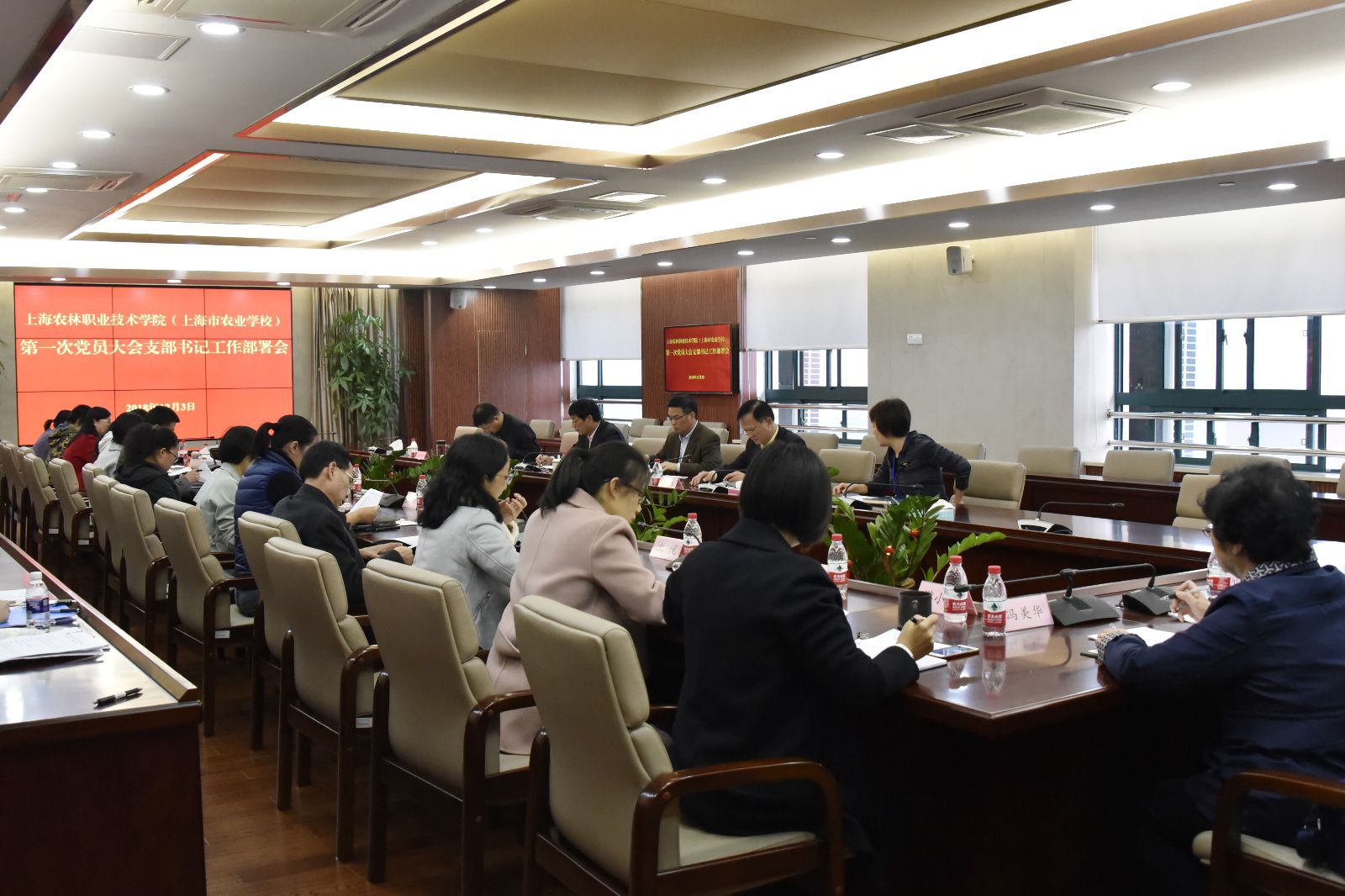 经党委会研究决定,并报请市教卫党委批复同意,拟于2018年12月底召开两校第一次党员大会。本次党支部书记会议部署了党员大会相关筹备工作,重点就中国共产党上海农林职业技术学院(上海市农业学校)第一届委员会和纪律检查委员会候选人预备人选提名工作进行了布置。