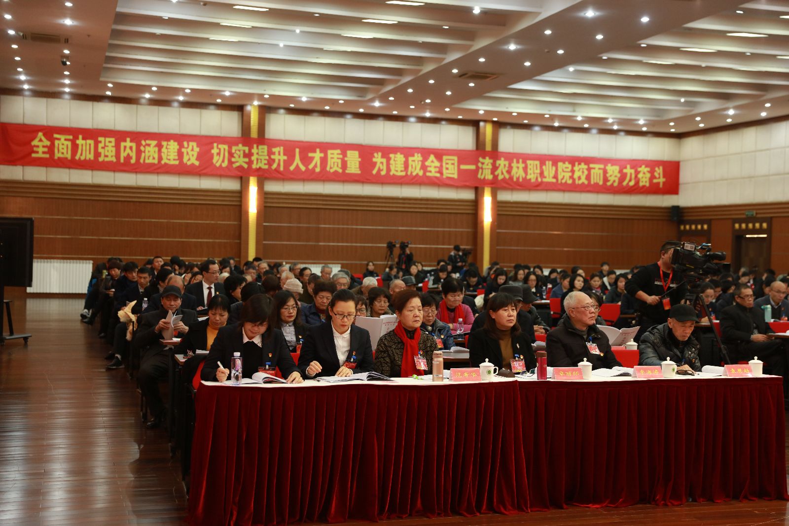 蔡红代表党委向大会作题为《全面加强内涵建设 切实提升人才质量为建成全国一流农林职业院校而努力奋斗》的报告。报告回顾总结了学校过去七年取得的成绩和经验,分析了学校改革发展面临的挑战,明确了未来五年的奋斗目标和任务。