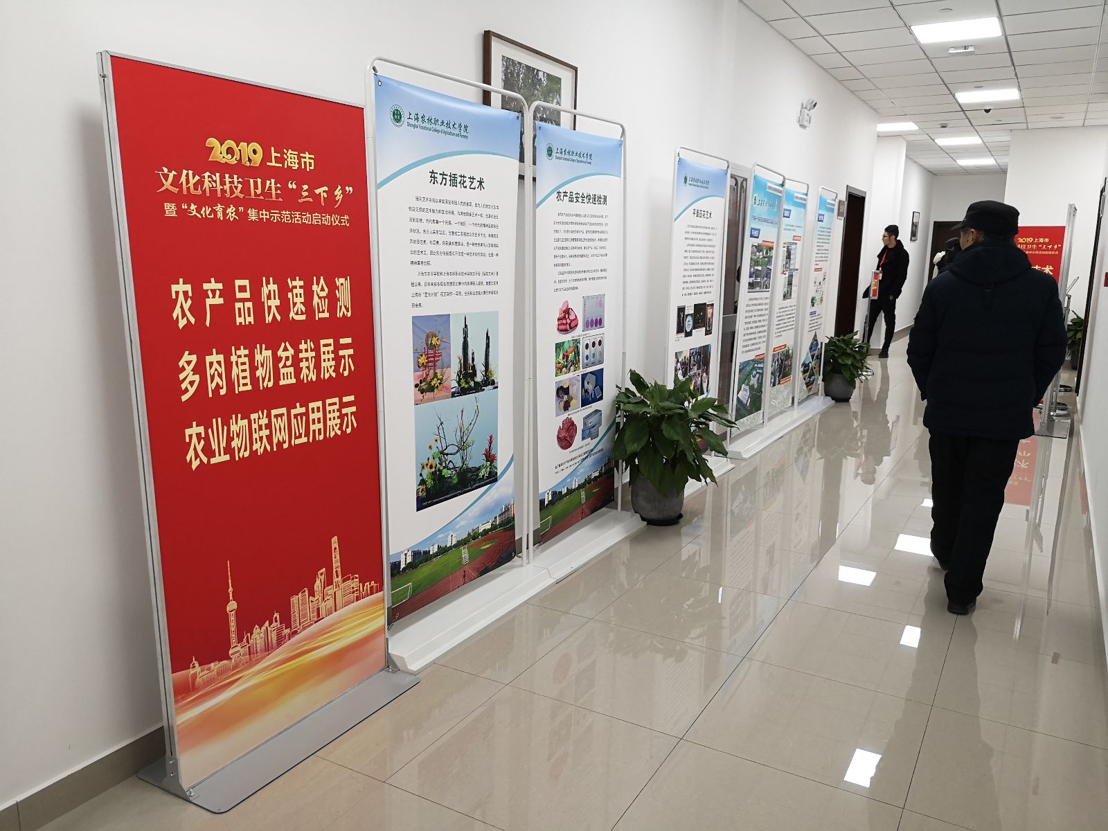 1月21日,在奉贤区柘林镇党建服务中心,2019年上海市文化科技卫生“三下乡”启动仪式暨“文化育农”集中示范活动在这里举行,活动由市委宣传部、市文明办、市发改委、市教委、市科委、市司法局、市农业农村委、市文旅局、市广播电视局、市卫健委、团市委、市妇联、市文联、市科协共同主办。我院作为市教委唯一一所农字头高职院校代表市教委参加了展示活动。市教卫工作党委宣传处副调研员俞真,学院党委副书记俞锦禄出席了活动。宣传处、植科系、农生系、农信系等部门负责人和成员共12人参加了活动。