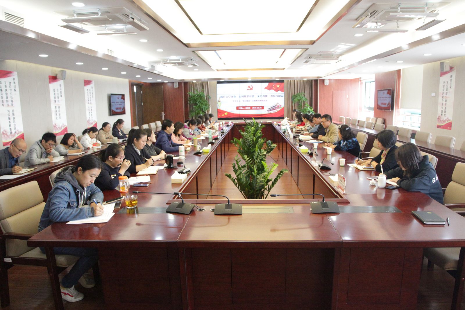 10月28日上午综合楼第一会议室,学院党委副书记、纪委书记俞锦禄同志以“践行初心使命,忠诚履职尽责,全力保障一流院校建设”为题,为党员教师上了一堂“不忘初心、牢记使命”主题教育专题党课。农经系、农信系和宣传思政三个党支部党员及纪委委员、各支部纪检员共计30余名党员教师聆听党课。