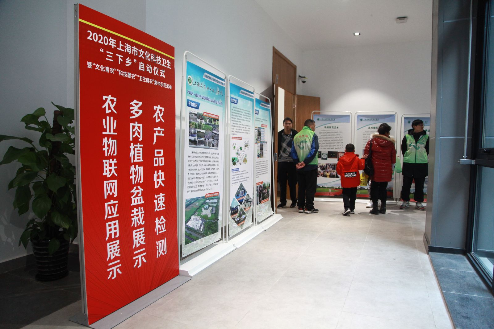 1月21日,在宝山区罗泾镇村民服务中心,2020年上海市文化科技卫生“三下乡”启动仪式暨“文化育农”“科技惠农”“卫生健农”集中示范活动,在现场举行。活动由市委宣传部、市文明办、市发改委、市教委、市科委、市司法局、市农业农村委、市文旅局、市广播电视局、市卫健委、团市委、市妇联、市文联、市科协等共同主办。来自本市文化、出版、农业、卫生、教育、科技、法律等领域的近200名“三下乡”工作者齐聚,为农民朋友和来沪务工人员答疑解惑,送农资、送诊疗、送春联、送图书、送演出下乡。学院代表市教委参加了展示活动。市教卫工作党委宣传处副处长俞真,学院党委副书记俞锦禄出席,宣传处、思政部、植科系、农生系、农信系等部门负责人和成员共12人参加了活动。