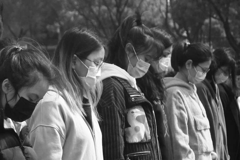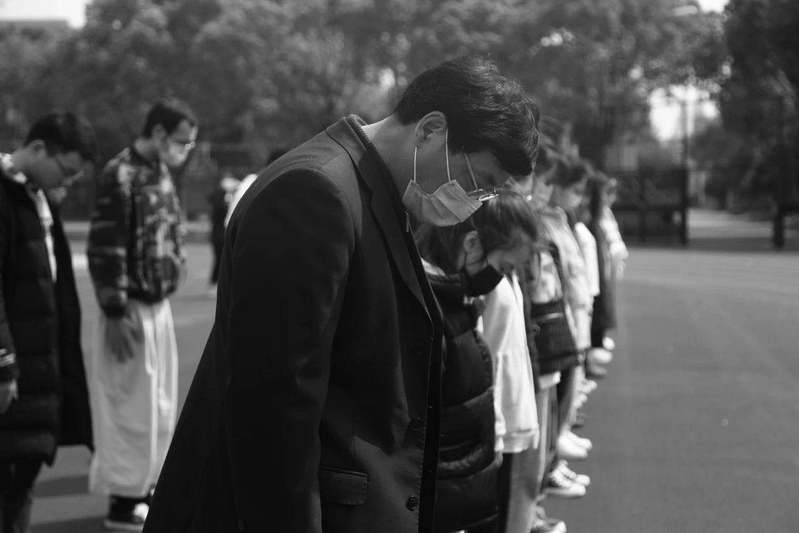 上午10时,在党委副书记、纪委书记俞锦禄的带领下,学院疫情期间留校师生在广场默哀3分钟,深切哀悼牺牲烈士和逝世同胞。