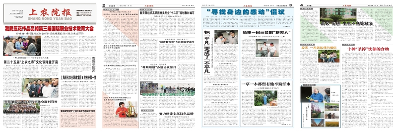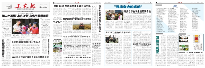 喜悦的同时,是深深的感谢。感谢校领导关心支持创办校报,感谢松江报资深编审毫无保留地手把手教我们怎么办报,感谢资深校友石鸿熙老先生为报名——上农报,留下墨宝;感谢宣传条线的负责人为首刊校报发表意见,使得报名从最初的“上农院报”确定为“上农报”并从第二期延续至今;感谢校报四个版面的编辑认真组织、编审版面内容甚至撰稿,感谢劳动报社每期高质量的组版和印刷,将一个个文档和图片在四个版面中呈现出新闻应有的模样。