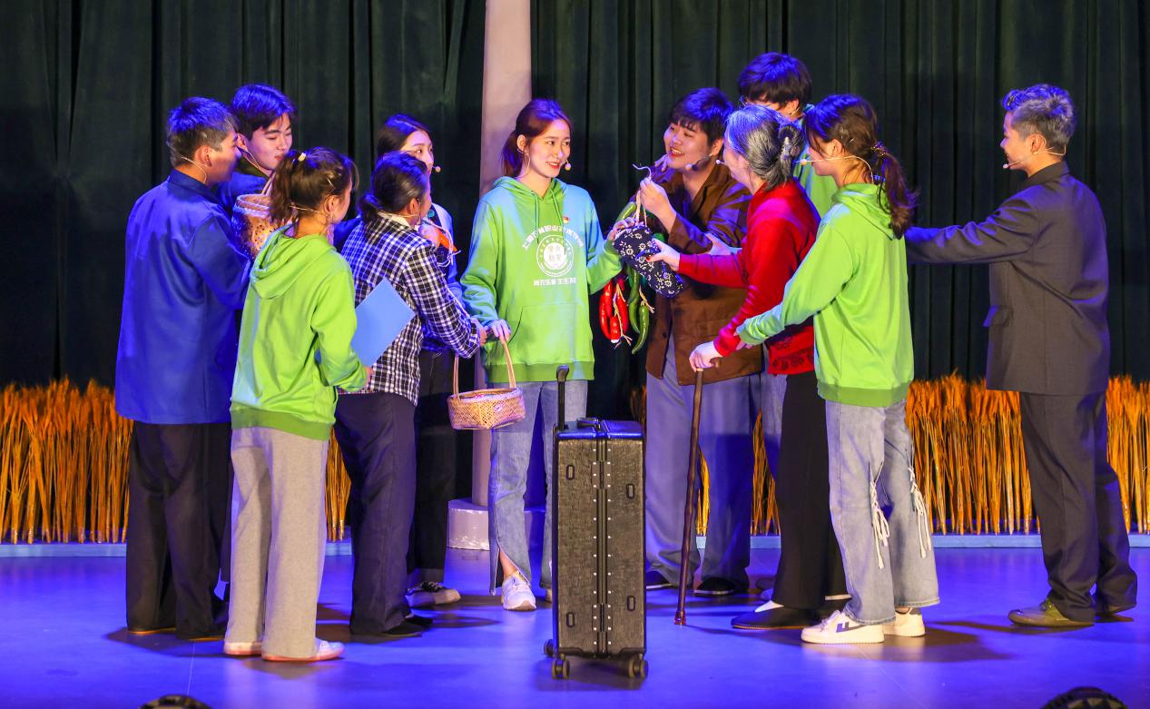 接到比赛通知后,学院党委宣传部牵头,团委负责组织实施,在专业指导教师的帮助下,对原创农业剧作进一步修改。此次展演的片段《青春热血 农心杨帆》,主要讲述了一批青春热血的大学生志愿者来到一个名叫新山村的地方,他们将最美的青春奉献在这里,用青春谱写着实现乡村振兴,共同富裕的乐章。胸前的党员徽章为他们指引前进的方向,他们也会将爱传递到更多更远的地方。因疫情常态化防控需要,今年仍采用线上展演模式。从创作选题、编写剧本到遴选演员、组织排演及最终线上展示,历时4个月,于2022年1月4日正式落下帷幕。师生们主动放弃休息时间,克服各种困难,保证排练效果。2个月的紧张集训,师生们在节目编排、音乐编辑、PPT制作、服装道具准备等方面都尽最大努力,力求精益求精。