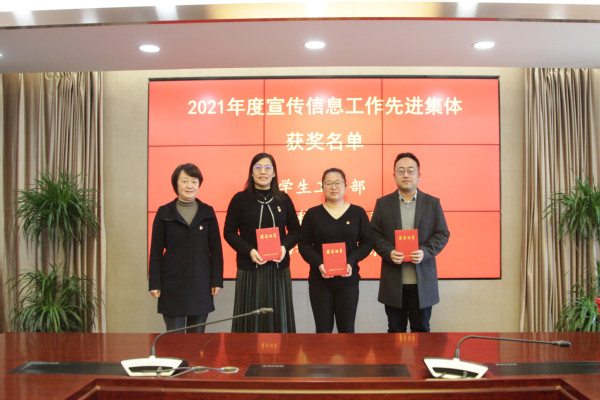 最后,陈谊对获奖部门、集体和个人表示热烈祝贺,对全体宣传信息工作者在2021年所取得的工作成效予以肯定,正是因为大家勤于“笔耕”才使得学院建设发展成效及时得到了宣传报道,产生了良好的社会影响力。陈谊强调,要从五个方面“下功夫”做好宣传信息工作:一是提高政治理论水平,厚植职业素养。要把提高思想政治理论水平和职业教育相结合,以高度的政治责任感、坚定的政治站位,弘扬正能量,做好新时代党的宣传思想工作。二是提升统筹谋划的履职能力。要提高全局意识,强化整体思维,围绕学院中心工作开展宣传报道,展现通力合作推动学院各项事业高质量发展的精气神。三是牢牢守住主阵地。要坚持正确的舆论导向,全面掌握师生思想动态,严格守牢课堂教学主阵地、校园文化阵地和网络阵地,以党建引领教育,做好思想文化宣传工作。四是创新宣传思想品牌,扩大学院影响力。要充分用好用活“一支部一品牌”“一系部一品牌”形成的有力机制,继续提升信息宣传质量,创新宣传工作模式,深挖典型案例,加大社会宣传力度,讲好“上农”故事,进一步提升社会影响力。五是一以贯之不断提升工作质量。要持续加强学习掌握新知识,拓宽新视野夯实本领,不断增强脚力、眼力、脑力、笔力“四力”,提高学院信息宣传的质量和实效,助推学院“双一流”建设和“十四五”规划落地生效,进一步提升学院社会知名度、美誉度,树立学院良好形象。