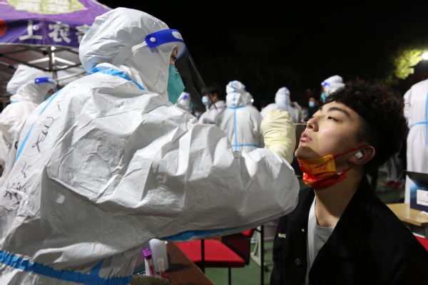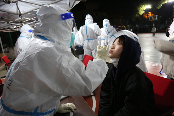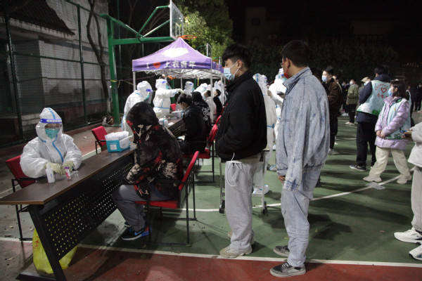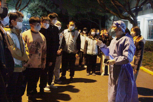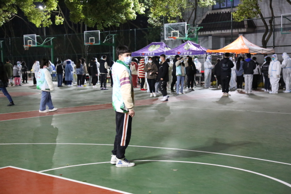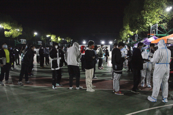 3月10日凌晨,师生进行第一轮核酸检测。学校核酸检测工作高效进行、秩序井然,在露天灯光篮球场,师生们整齐排队,安静有序。医护人员全力投入紧张的检测工作中,广大师生密切配合。身份验证、咽拭采样、耐心等待,医护人员和师生员工用行动配合防疫,用理解传递友爱。