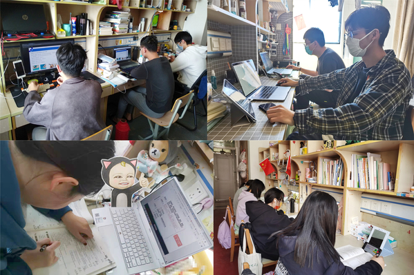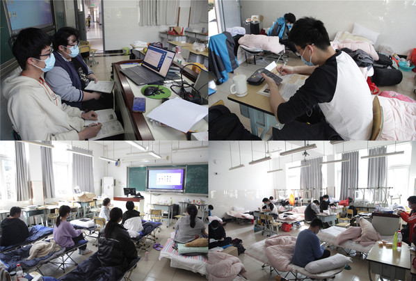 学生在宿舍、一教、智工楼在线上课