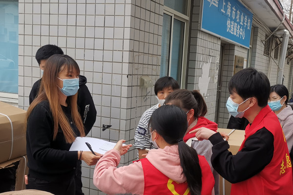 后勤管理者发放学生公寓生活用品
