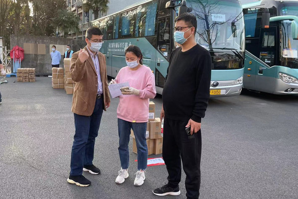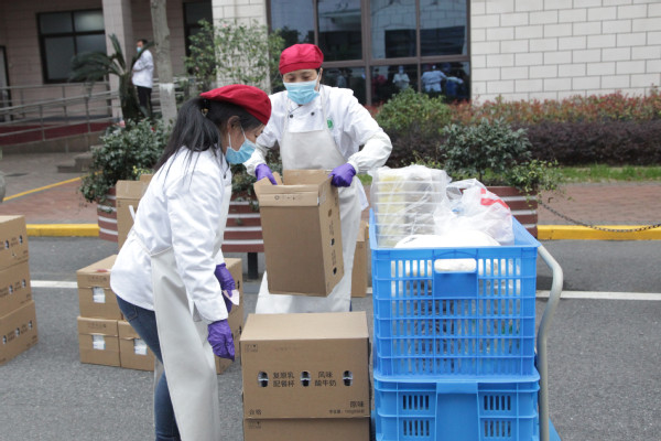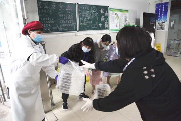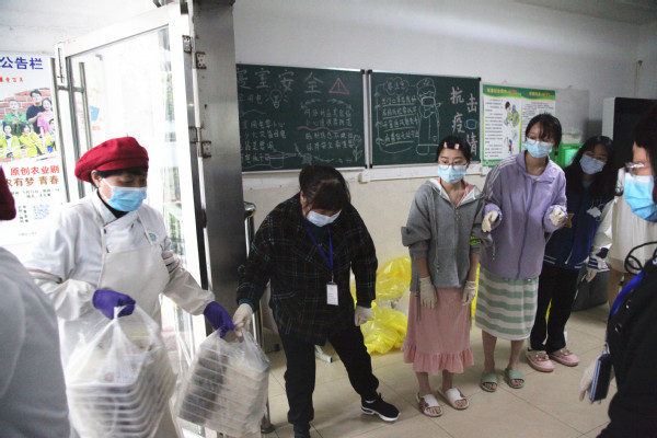 后勤管理者为学生送餐