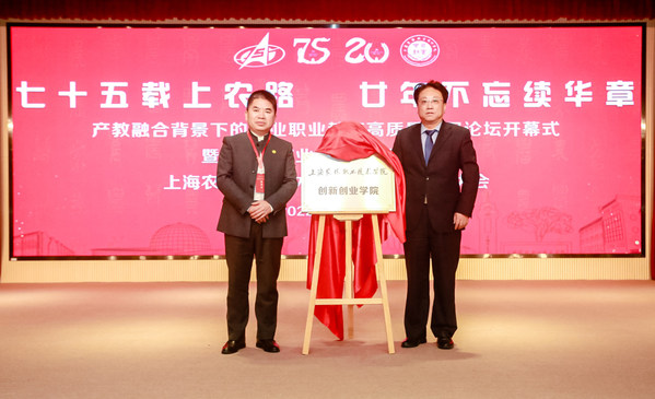 大会上,市教卫工作党委二级巡视员杨伟人、上海华维可控农业科技集团股份有限公司董事长吕名礼共同为创新创业学院挂牌。