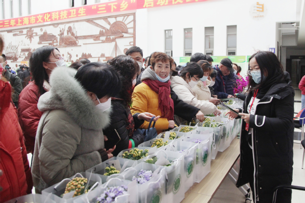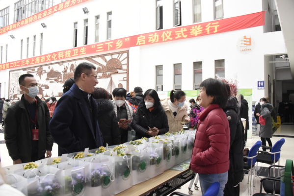 2月21日, 2023年上海市文化科技卫生“三下乡”启动仪式暨“文化育农”“科技惠农”“卫生健农”集中示范活动,在崇明区陈家镇新时代文明实践分中心举行。来自本市文化、农业、科技、卫生、医疗、法律、教育等近百名“三下乡”工作者为陈家镇村民和来沪工作者送农资、送农技、送法律咨询、送诊疗、送春联、送图书、送演出。