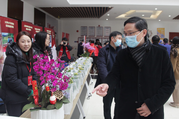 展示现场,市委宣传部副部长潘敏、市教卫工作党委副书记闵辉莅临。学院教师热情地为村民科普不同种类绿植养护方法和蔬菜水培知识点,送绿植大礼包,并把学院师生设计扦插的花卉作品赠给陈家镇。
