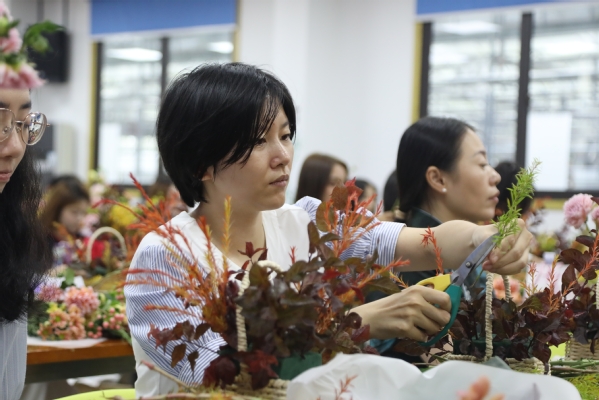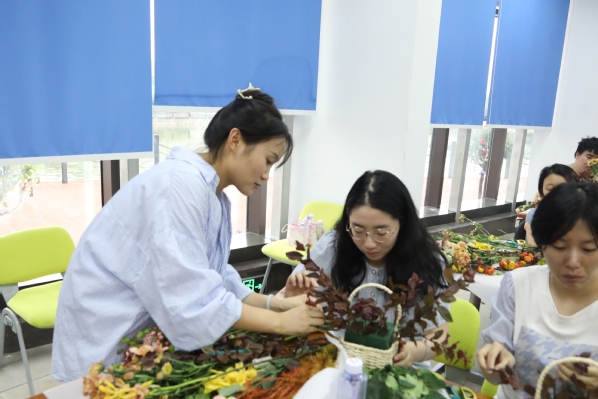 午后,随着插花活动的开启,现场洋溢着艺术的气息。在花艺老师杨灵芝的精心指导下,大家不仅学习到了插花的基本技巧,还深入了解了各类花卉所蕴含的丰富寓意。随后,大家充分发挥自己的创意与想象力,将五彩斑斓的鲜花巧妙搭配,创作出一件件插花作品。这些作品或清新脱俗,或热情奔放,不仅展示了参与者对美的独特追求,更寄托了对生活的热爱与向往。