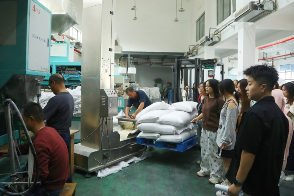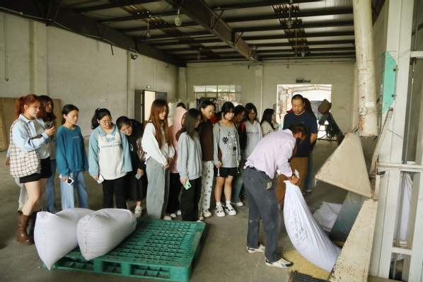 随后,师生们抵达松江区农民专业合作联社优质稻米加工基地。在工作人员的介绍了下,了解基地内先进的加工设备和稻米生产加工的流程,让师生们对优质稻米从田间到加工的全过程有了清晰的认识,也感受到现代农业的高效与精细。