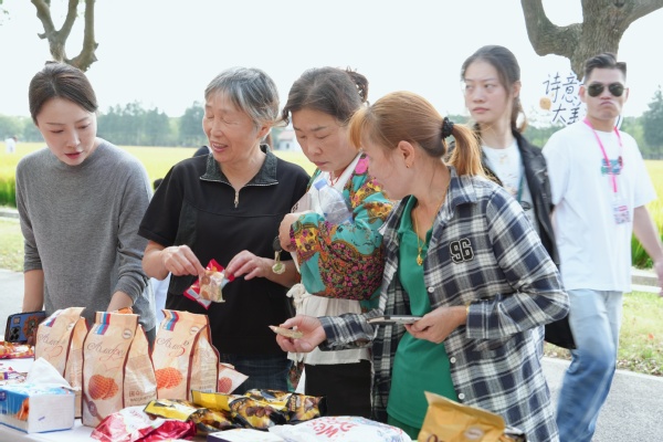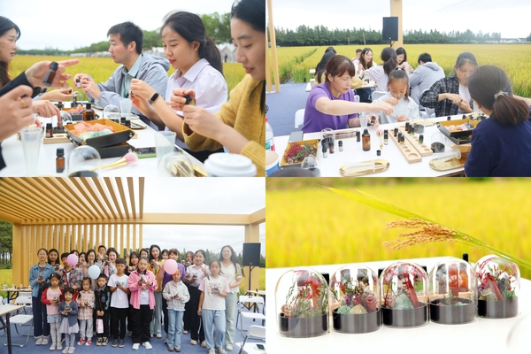 学院的专业优势在此次艺术节中走进乡村生活。“泖田艺术节”耕读学堂内,由我院教师主讲的“香薰制作”“插花艺术”两场生活美学课如期开课。课堂上,老师们摒弃高深理论,以“手把手教学”的方式,指导村民根据喜好调配香薰精油、根据花材特点修剪花枝。“原来插花还要考虑色彩搭配和高低层次,真是长见识了!”“原来香味可以这么调配!”村民们捧着手中已完成的作品笑着感慨。整个课堂充满欢声笑语,村民们在动手实践中不仅掌握了实用技能,更真切感受到生活美学带来的愉悦。这种“接地气”的专业服务,让学院的教学资源真正下沉到乡村一线,为村民生活增添了别样的艺术色彩。