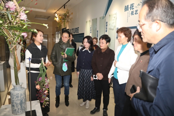 会后,姚卓匀一行参观了植物工厂、种子检测中心和花艺实训中心,并参加了“非遗进课堂”教学成果展示活动。