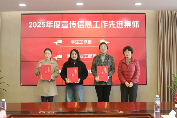 会上,对2025年度宣传信息工作中表现突出的先进集体、先进个人及年度“好新闻”获奖作品进行了表彰。经部门申报、民主推荐、学院审议等评选程序,遴选15篇年度“好新闻”;学生工作部(团委、人民武装部)、智慧农业工程系、数字经济与创意系获“宣传信息工作先进集体”称号;丁炎慧等12名同志获评“宣传信息工作先进个人”称号。